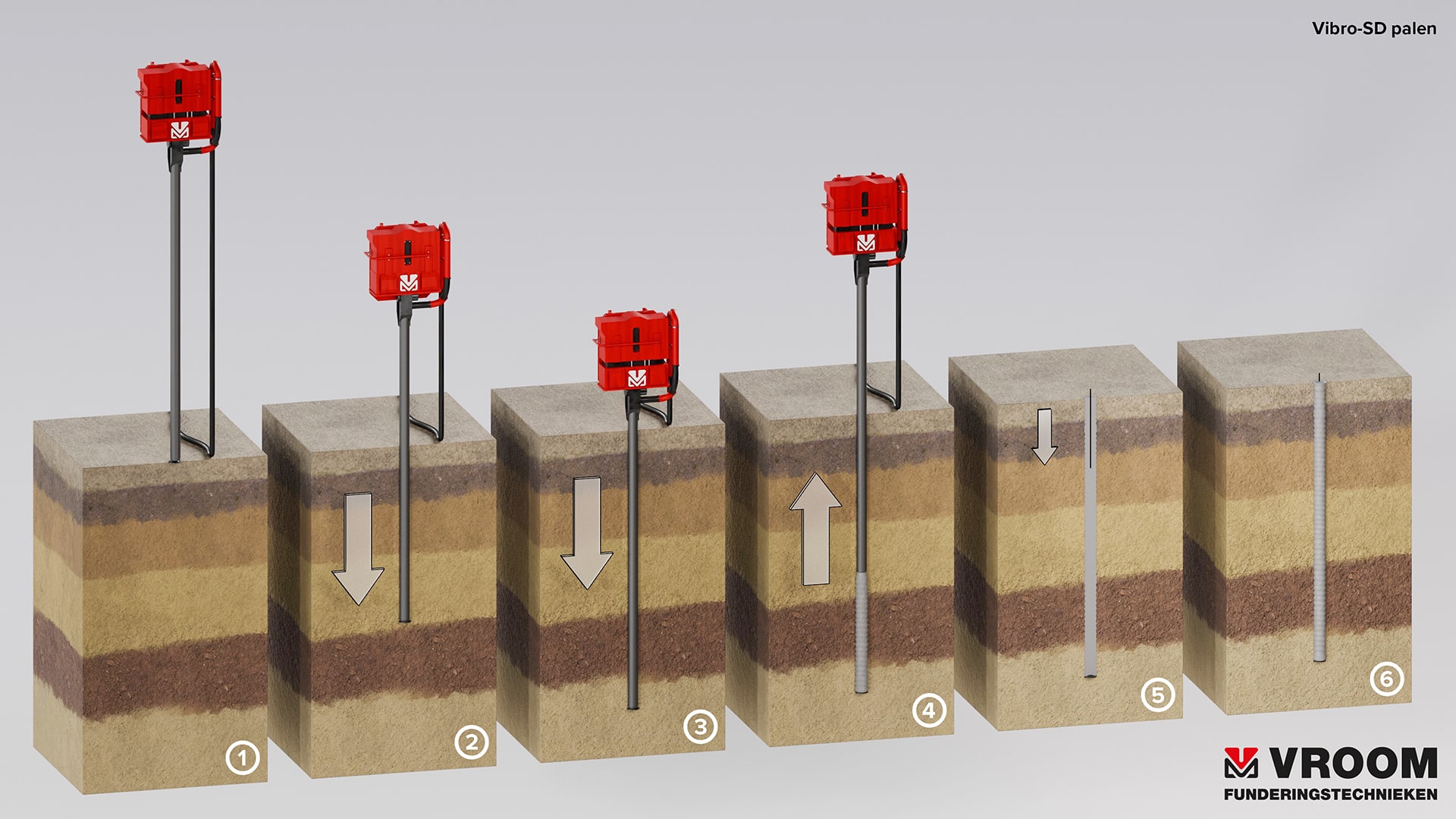 Vroom Funderingstechnieken stellt Vibro-SD-Pfähle gemäß der eigenen Ausführungsverfahren her, die im Rahmen der internen Qualitätskontrolle und den landesweit geltenden Normen aufgestellt wurden. Von Vroom Funderingstechnieken hergestellte Vibro-SD-Pfähle können optional akustisch gemessen und anschließend von einem unabhängigen Beratungsbüro bewertet werden. Durch die eigene Qualitätskontrolle kann angemessen auf Zweifel an der Pfahlqualität oder auf Wünsche des Auftraggebers bezüglich der Ausführung reagiert werden.