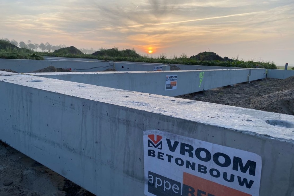 Bauen mit vorgefertigten Fundamentbalken dient der Effizienz, Baugeschwindigkeit und der konstanten Qualität des Endprodukts. VorgefertigteFundamentbalken werden von Vroom mit einem KOMO/KIWA-Produktzertifikat entworfen, hergestellt und verbaut. Vorgefertigte Fundamentbalken gewährleisten eine kurze Realisierungzeit. An Hand des Entwurfs des Hauptstatikers erstellt Vroom Fundamentzeichnungen. Danach kalkulieren wir die Bewehrung, die wir in die Elemente einzeichnen. Vorgefertigte Fundamentbalken werden in einer Vielzahl von Standardbreiten und Höhenmaßen sowie in allen gewünschten Längenmaßen hergestellt und können mit Ein- und Nachbetoniereinrichtungen ausgerüstet werden, wie z.B.: