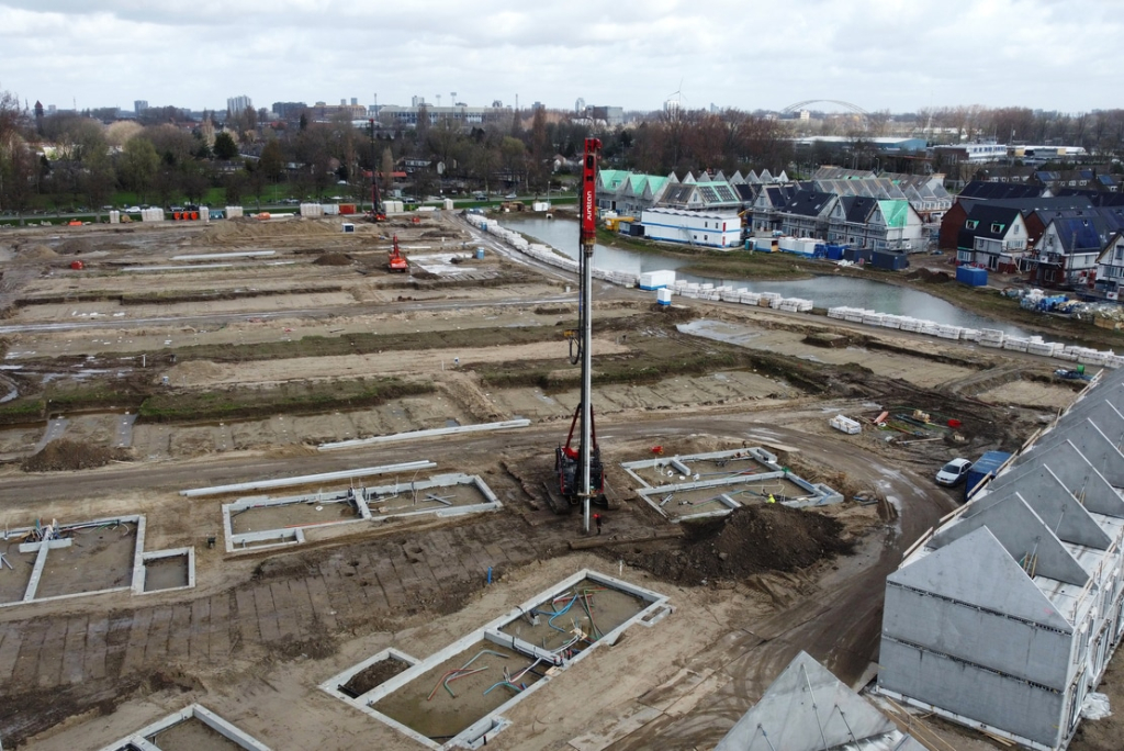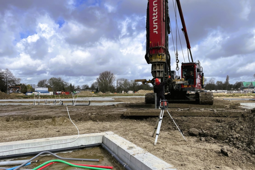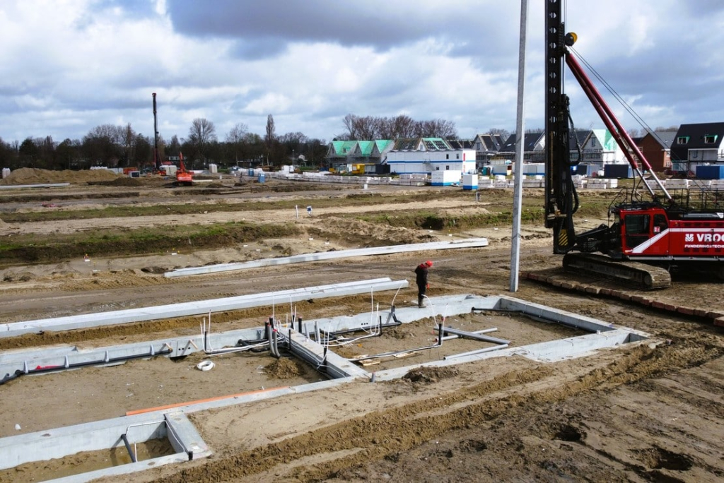Tuinbuurt Vrijlandt wird ein energieneutrales Stadtviertel und liegt am schönen Ogiersingel und Jan Vrijlandtsingel in Rotterdam-Süd. Ein nachhaltig angelegtes Wohnquartier, in dem Menschen verschiedenster Zielgruppen leben und zusammenkommen. Insgesamt entstehen hier 290 Miet- und Eigentumswohnungen in qualitativ hochwertiger Architektur und Anmutung. Das Fundament besteht aus vorgefertigten Rammpfählen und vorgefertigten Fundamentbalken mit Ein- und Nachbetoniereinrichtungen.