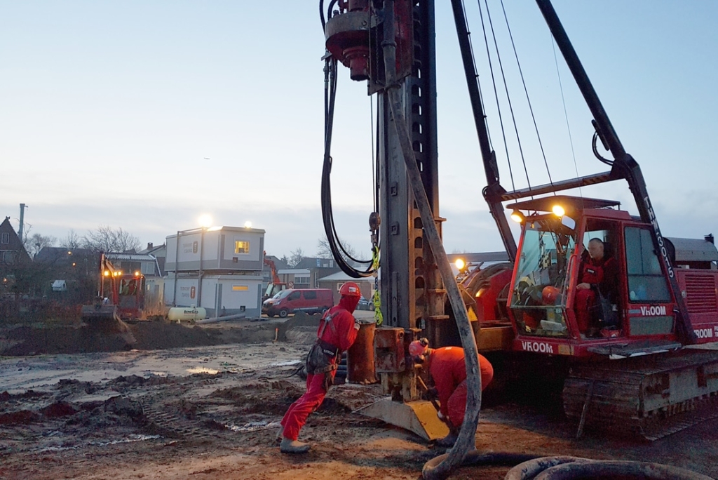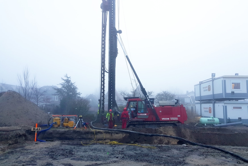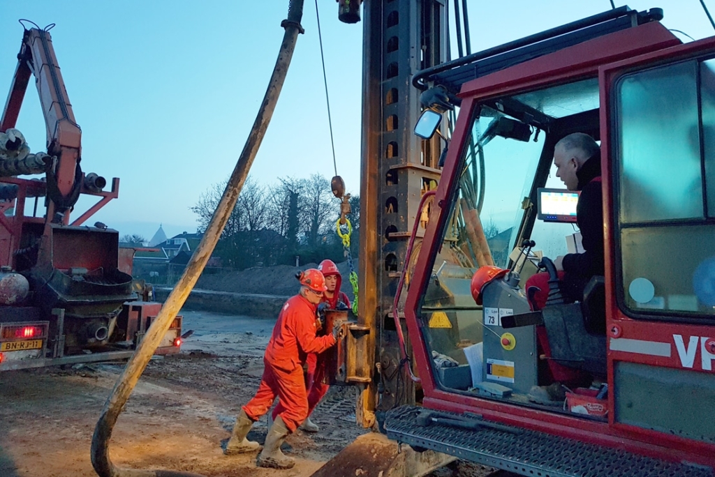 Bei unwirtlichem Nebelwetter haben wir für die Firma Beton Bouw Service De Hoop 271 Betonschraubpfähle hergestellt. Auf den vorgefertigten Pfählen montiert Vroom die vorgefertigten Fundamentbalken. Unser Projektplaner Dave Liefting besuchte das Projekt und machte diese wunderschönen Bilder von den Rammarbeiten.