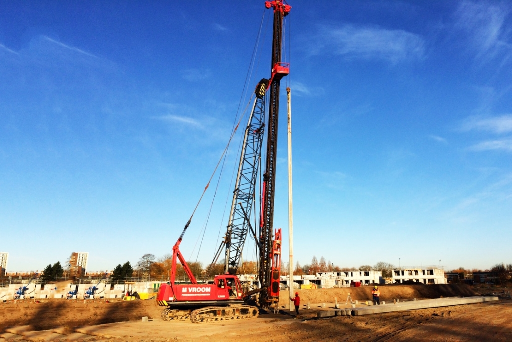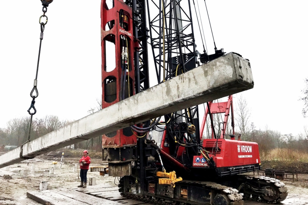 Im Schiedamer Stadtteil Kethel entwickelt Dura Vermeer das einzigartige Wohnviertel ‚Schiedamse Meesters‘. Das neue Quartier entsteht auf dem Gelände des ehemaligen Sportparks Kethel. Für die ersten 52 Häuser baut Vroom die vorgefertigten Rammpfähle ein.