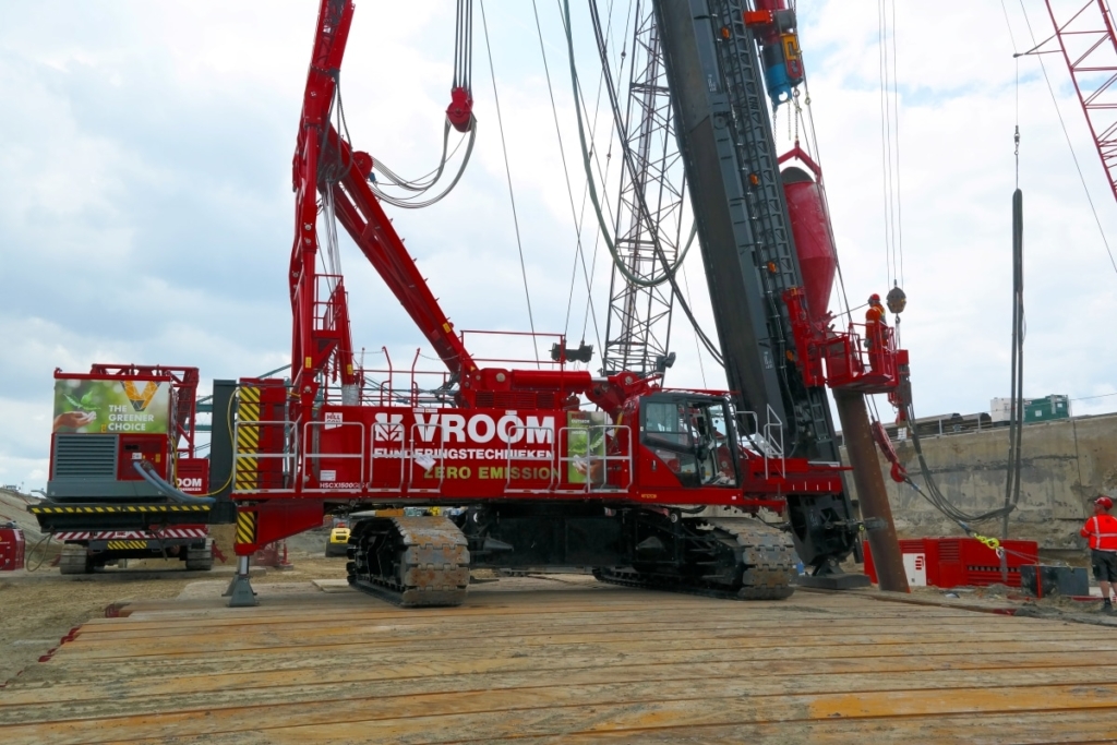 The Hillcon HSCX1500GLS-E battery-electric foundation machine is specially developed for the production of vibro piles and vibro-combi piles with lengths up to approximately 50 meters.