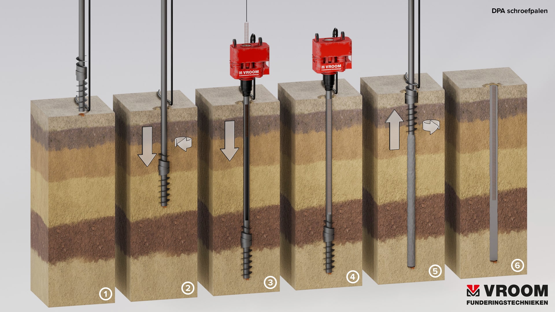 Vroom Funderingstechnieken has extensive experience with DPA screw piles and provides advice on the application possibilities of this pile type and other screw pile systems.