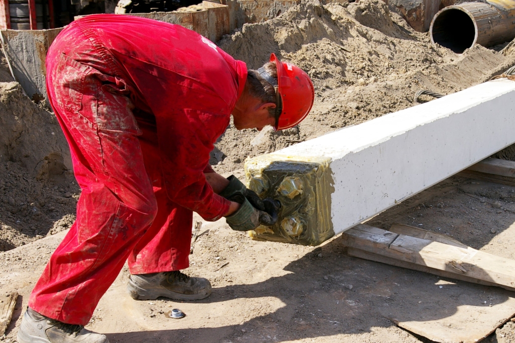 - The grout mixture is partially applied around the prefabricated concrete element.