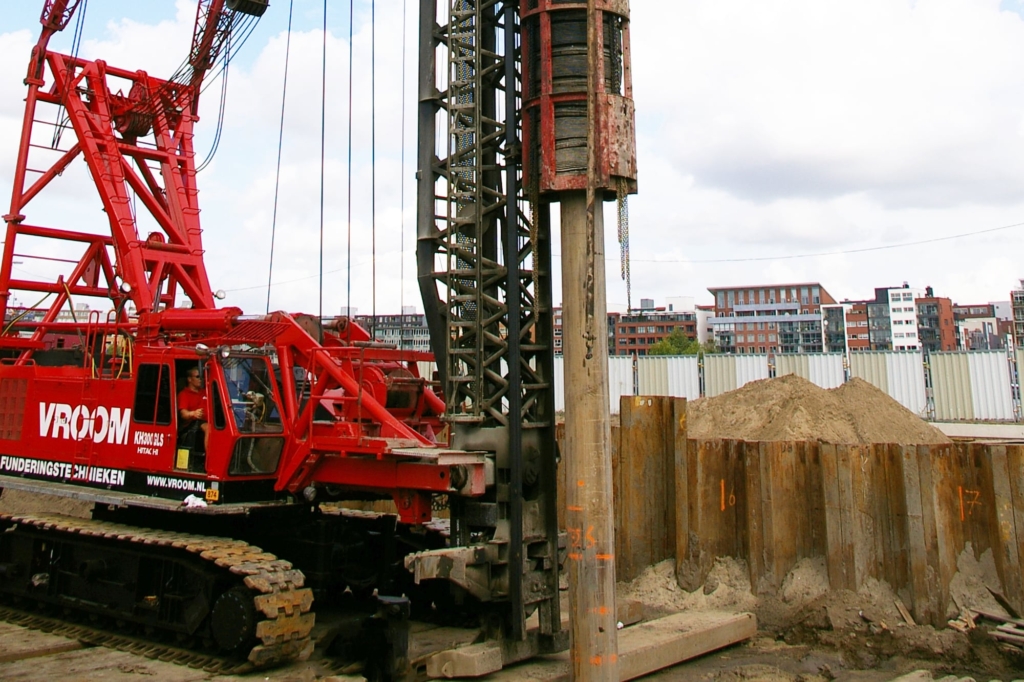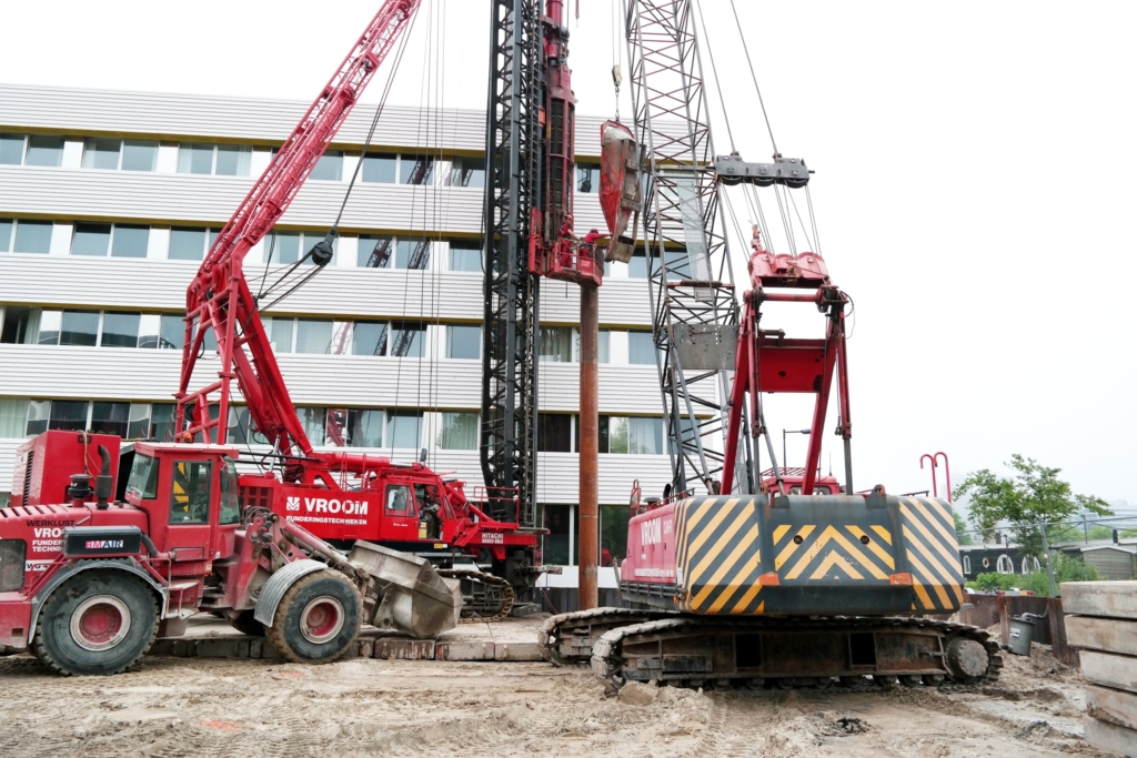 Control of the geotechnical bearing capacity is possible based on the number of strikes per 25 cm, which can be automatically recorded by the IHC hammers. Acoustic measurement of the vibro-combi piles is not necessary, as the piles are stress-free introduced into the pile tube. In some cases, these piles can be acoustically measured. The prefabricated concrete elements are supplied under a KOMO certificate. The grout for the vibro-combi piles comes from certified plants. Vroom Funderingstechnieken can perform additional checks on the grout quality by casting cubes on-site and testing them.