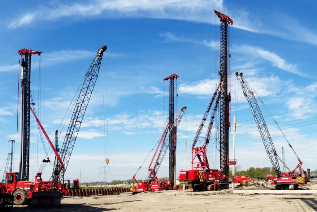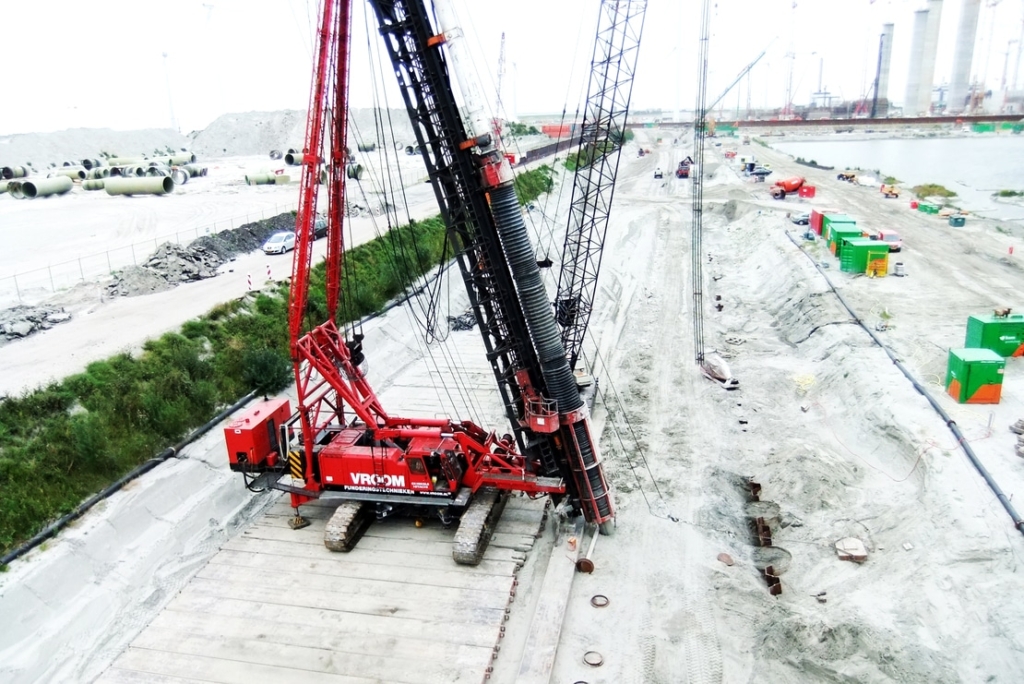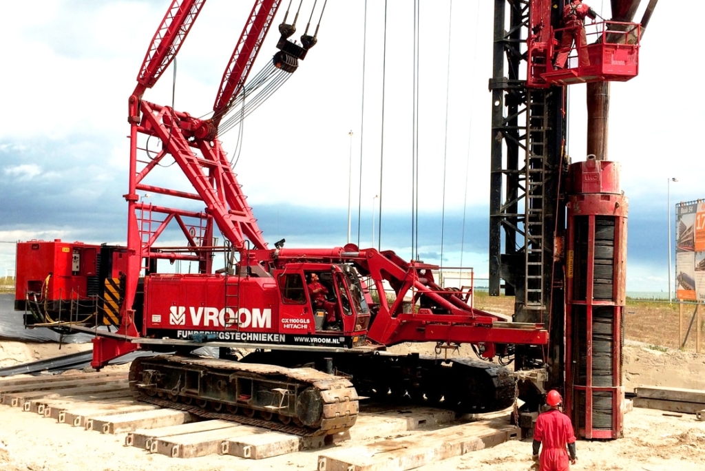 Vroom Funderingstechnieken can deploy various hydraulically controlled foundation machines. For vibro piles type HBF, foundation machines are used to manufacture pile lengths up to 24 m, 28 m, 32 m, 38 m, and a maximum of 44 m. The application of larger pile lengths than 38 m is investigated upon request.