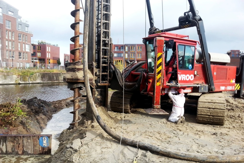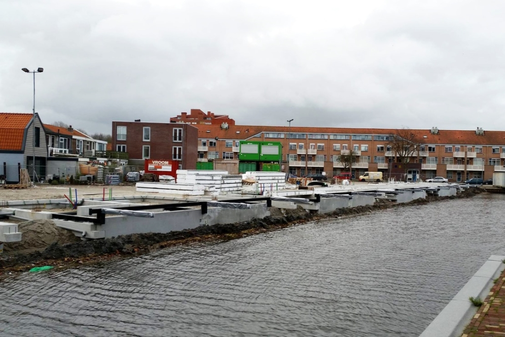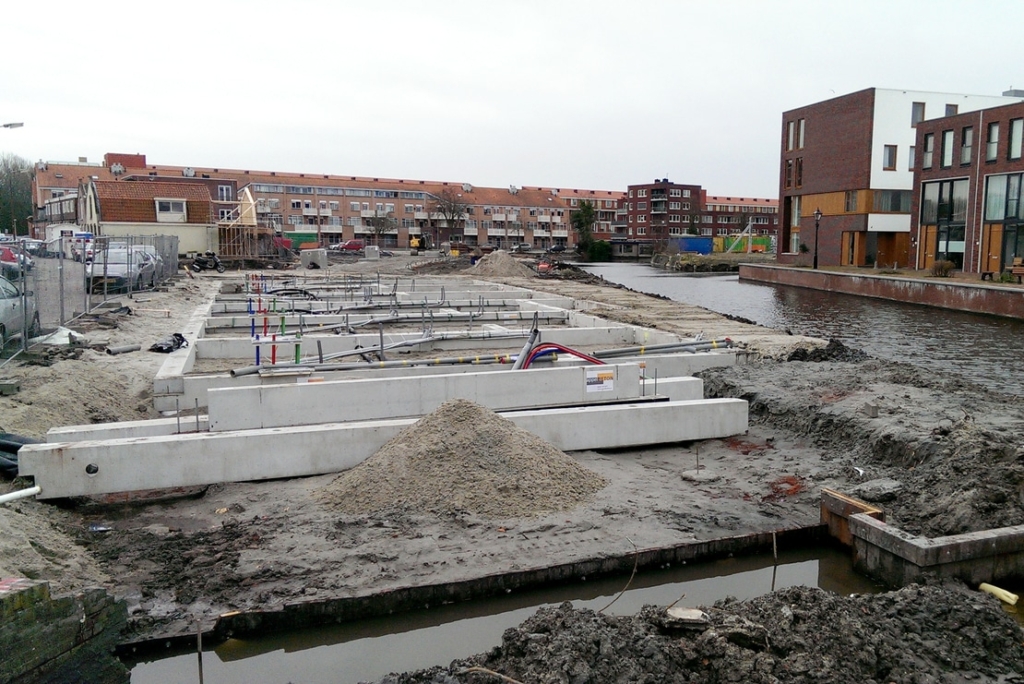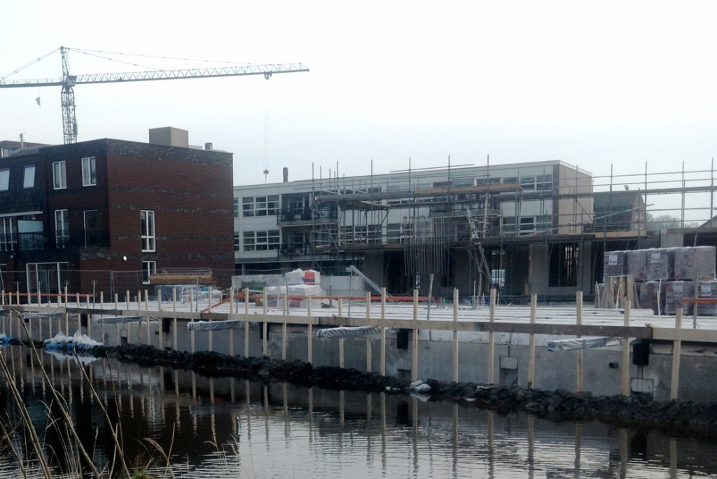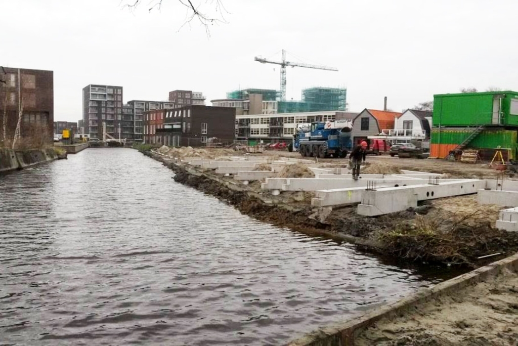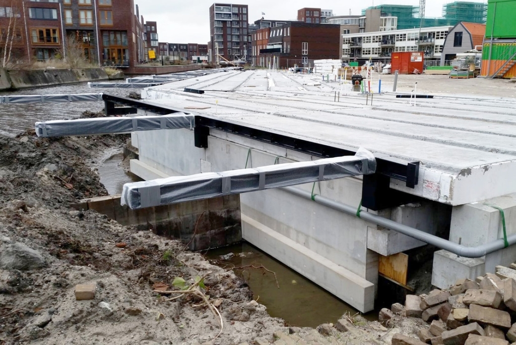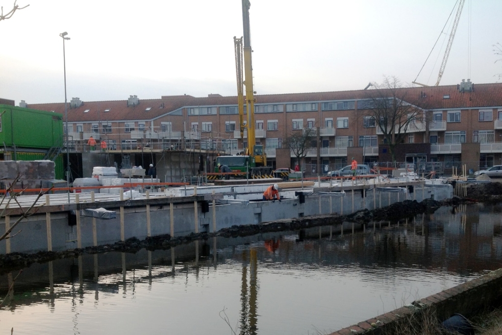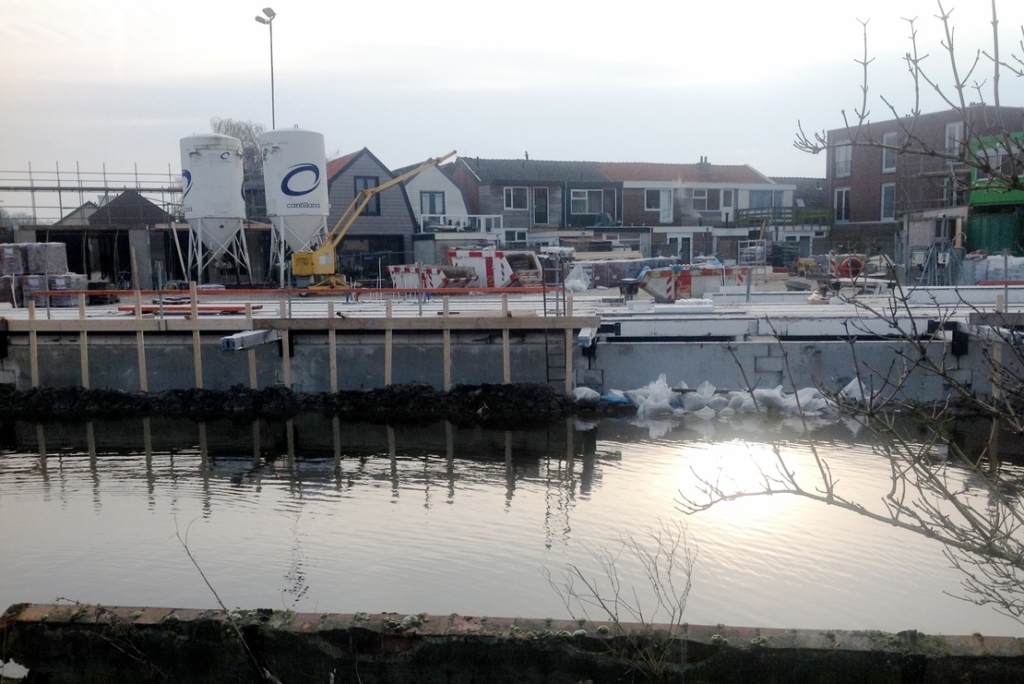 A total of 239 piles has been drilled and prefab foundation beams measuring a total of 858 m have been mounted. Moreover, alongside the canal we have placed prefab quay walls with their bottoms placed directly into the water. An advantage of prefab construction elements is that after placing them, a direct start can be made with the masonry activities.