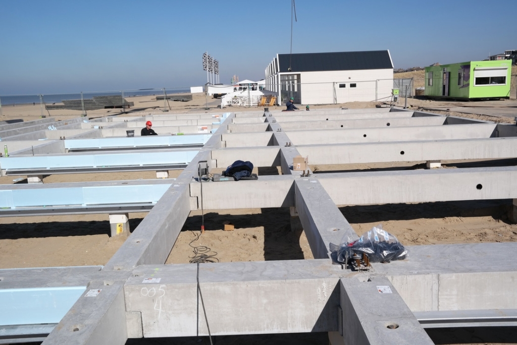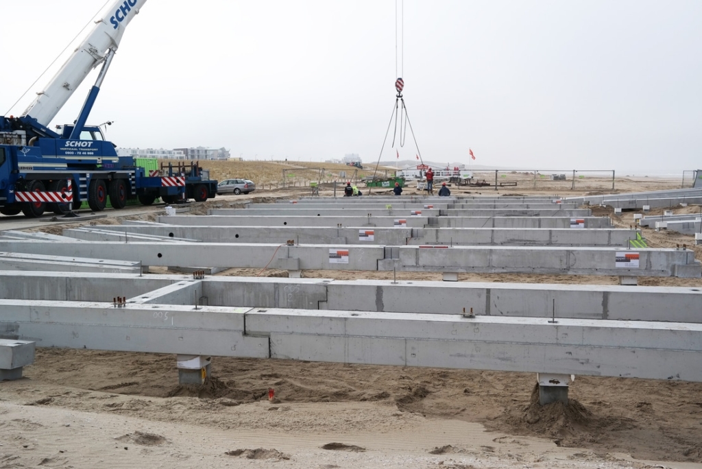 A requirement for building on coastlines is that the construction project has to be able to be made undone. Using prefab foundation beams is an advantage as they can be mounted in such a way that they can simply be dismounted. The floors have been realized as hollow core-slabs which are prefab elements that can be mounted or dismounted fast.