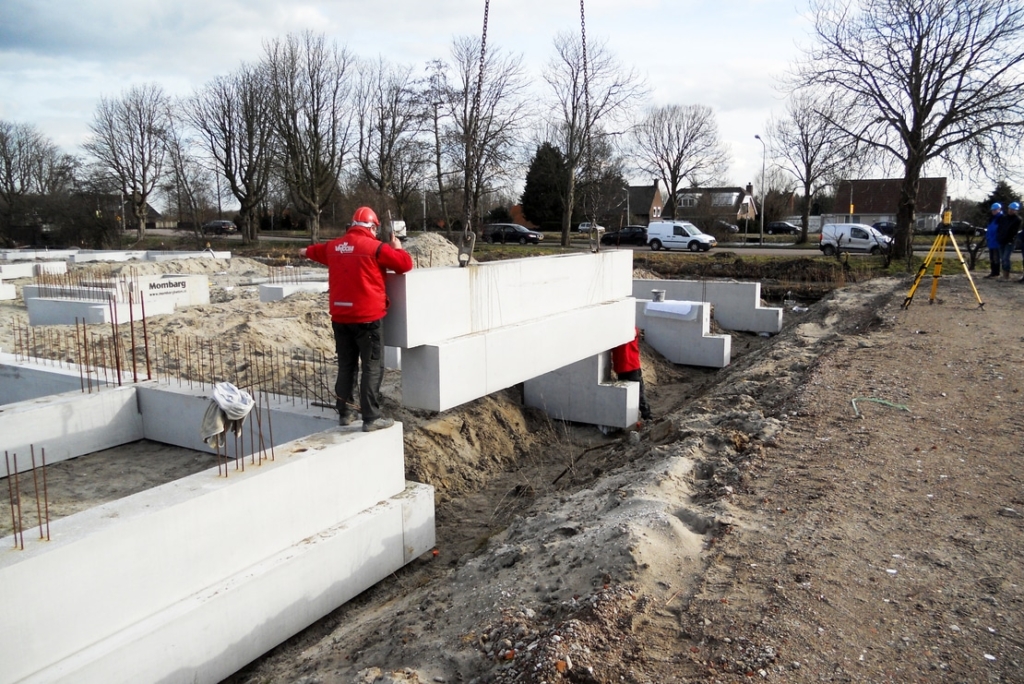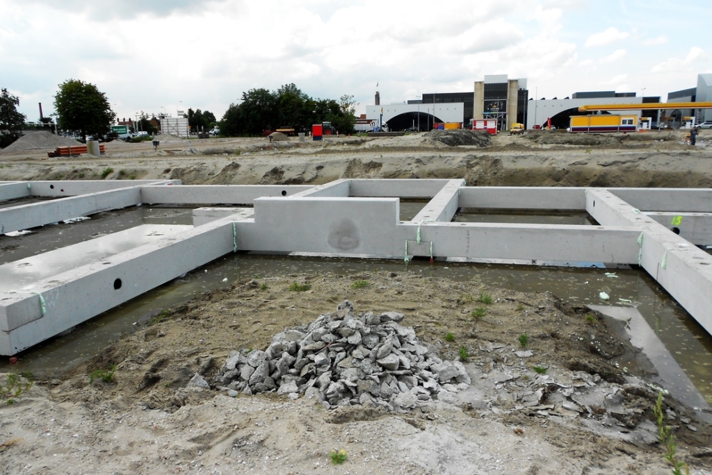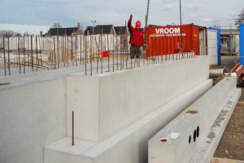 The new apartment complex buildings were very suitable for the application of a prefab foundation construction. The bottom of the foundation is placed under the waterline. On both sides of the building, a canal is realized which meant that the parts foundation beams had to be visible. In terms of dimensioning, the openings have been adjusted and various parts have been chamfered. The prefab foundation elements have been executed with a maximal height of 1285 mm and a width until 800.