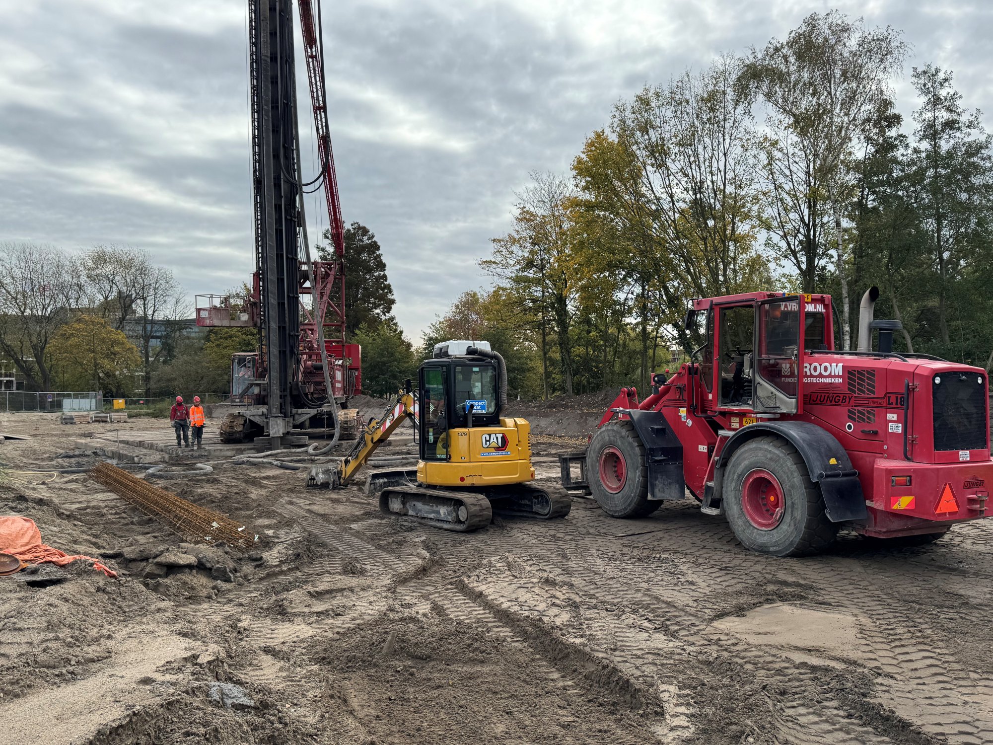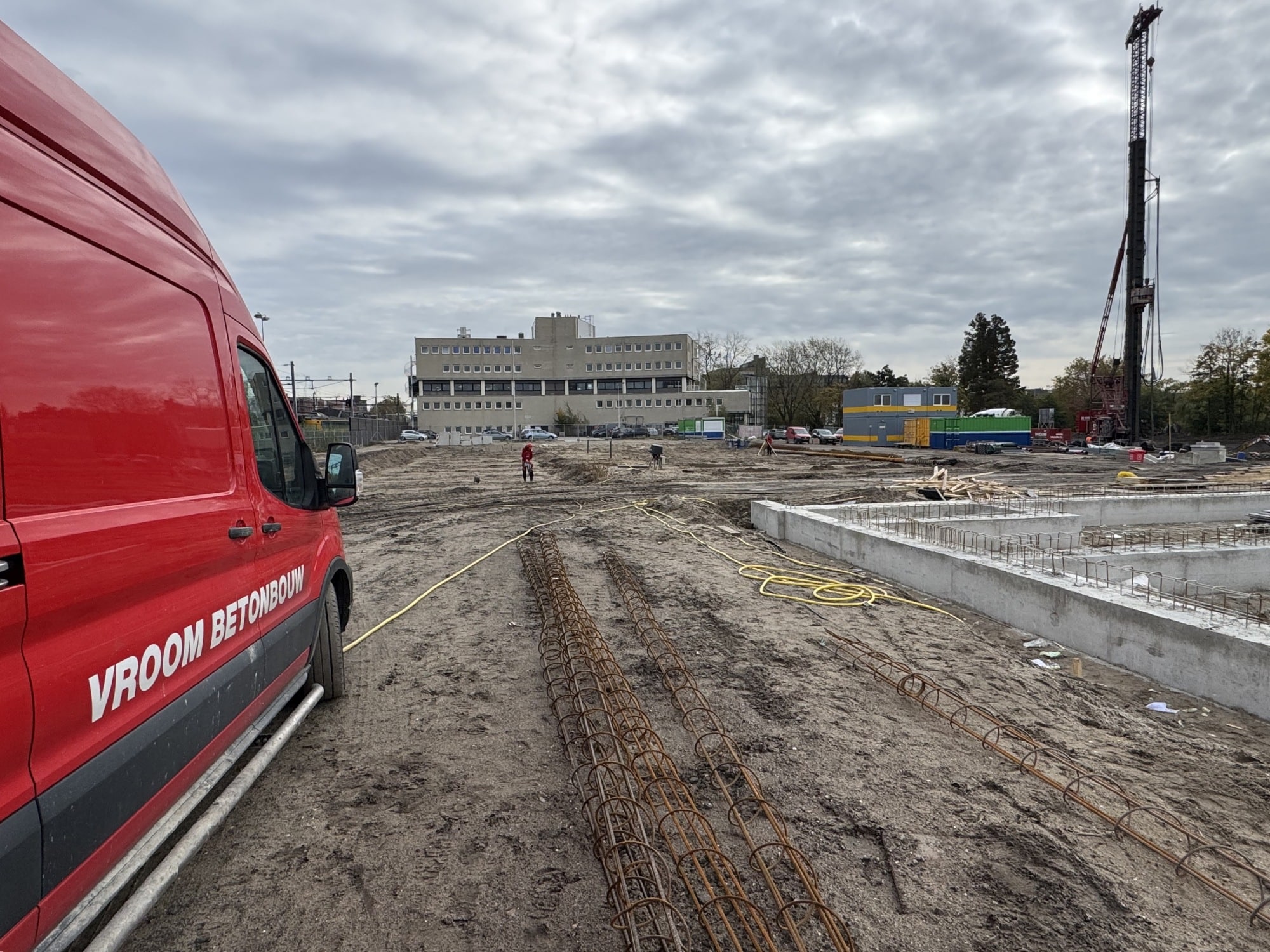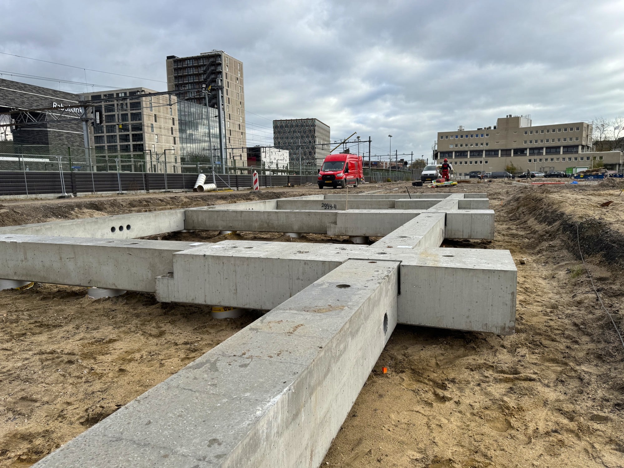 The foundation of this new neighbourhood consists partly of DPA screw piles: a displacement, low-vibration system that produces hardly any drill spoil. Vroom Betonbouw handled the setting-out and installation of prefab beams, chambers and storage floors. The steel tubular piles were installed by VDB Funderingstechnieken using compact foundation rigs that are ideal for working in confined spaces. In addition, Hadek carried out part of the concrete work using traditional methods, combining on-site craftsmanship with Vroom’s technical expertise. This enables efficient construction in an area with complex urban lines and level differences.