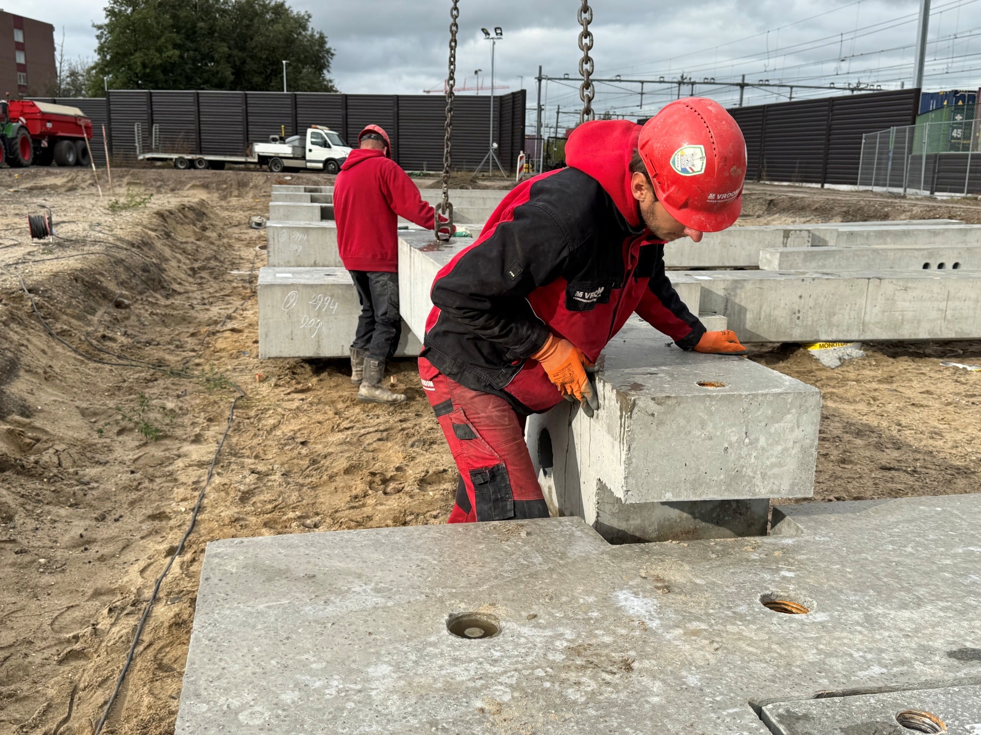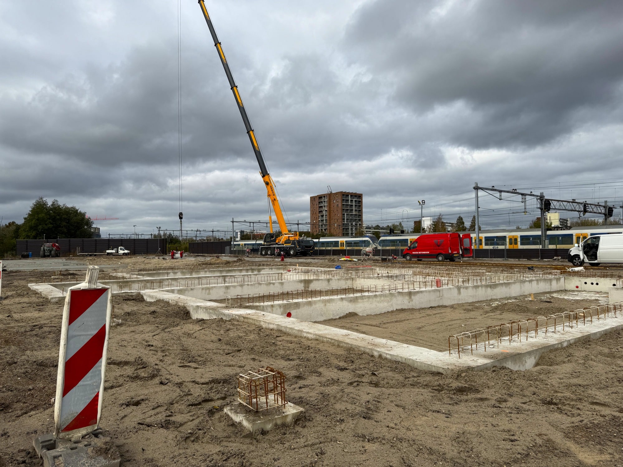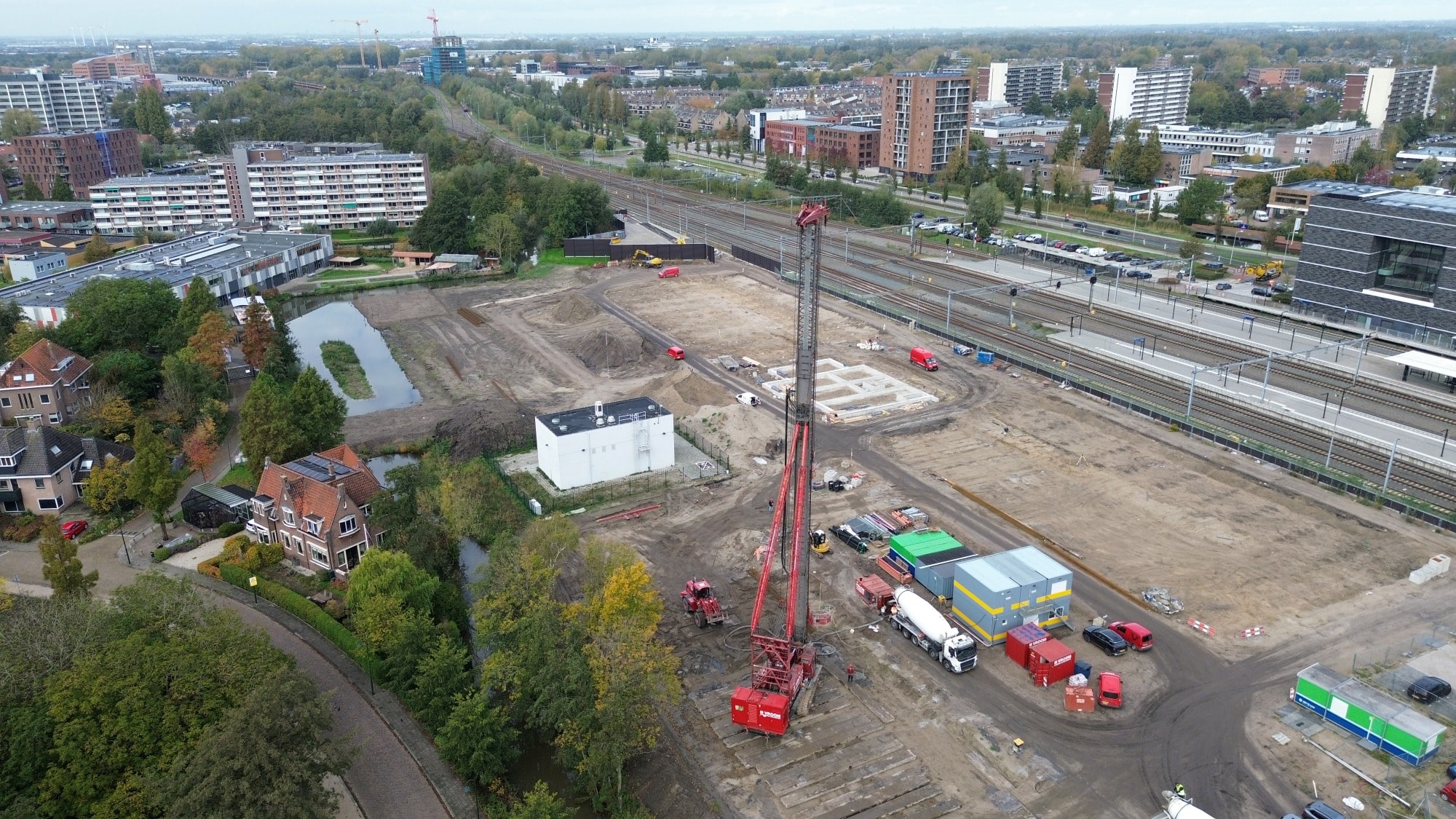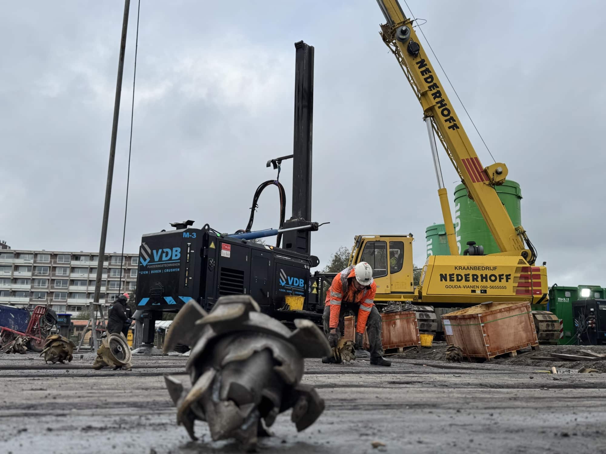 The foundation of this new neighbourhood consists partly of DPA screw piles: a displacement, low-vibration system that produces hardly any drill spoil. Vroom Betonbouw handled the setting-out and installation of prefab beams, chambers and storage floors. The steel tubular piles were installed by VDB Funderingstechnieken using compact foundation rigs that are ideal for working in confined spaces. In addition, Hadek carried out part of the concrete work using traditional methods, combining on-site craftsmanship with Vroom’s technical expertise. This enables efficient construction in an area with complex urban lines and level differences.