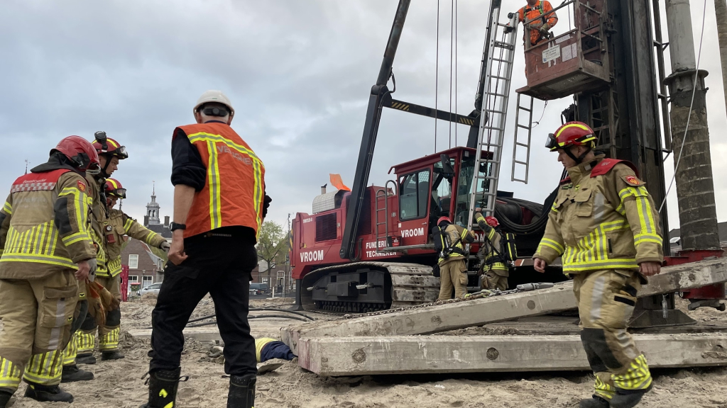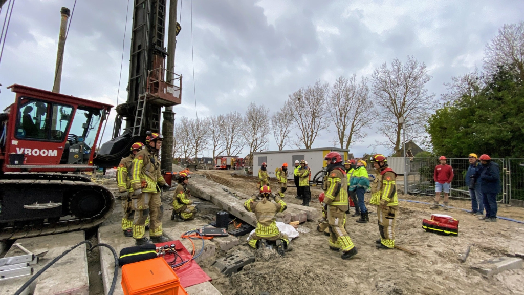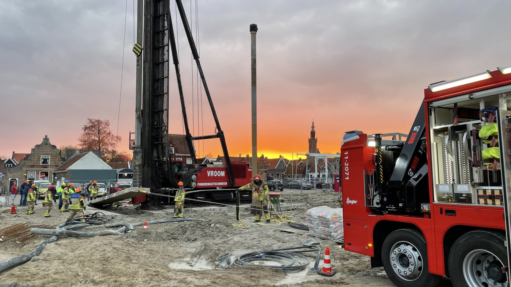 Ditmaal hielden de brandweerposten Edam en Oosthuizen een gezamenlijke oefening op een locatie die gelukkig niet alle dagen voorkomt en die de nodige voorbereiding en afstemming nodig had. Op een bouwlocatie van HSB Bouw in Edam werd geoefend rondom onze funderingsmachine. Een niet-alledaagse situatie die in het teken stond van het oefenen met materiaal en materieel die anders zijn dan waarmee de brandweer normaliter oefent. Deze avond stond ook in het teken van de samenwerking tussen verschillende hulpverlenende diensten, een bouwbedrijf en een funderingsbedrijf. Een mooi leermoment voor de brandweer om te kijken wat de beste manier is om slachtoffers in veiligheid te brengen met het beschikbare materiaal en materieel.