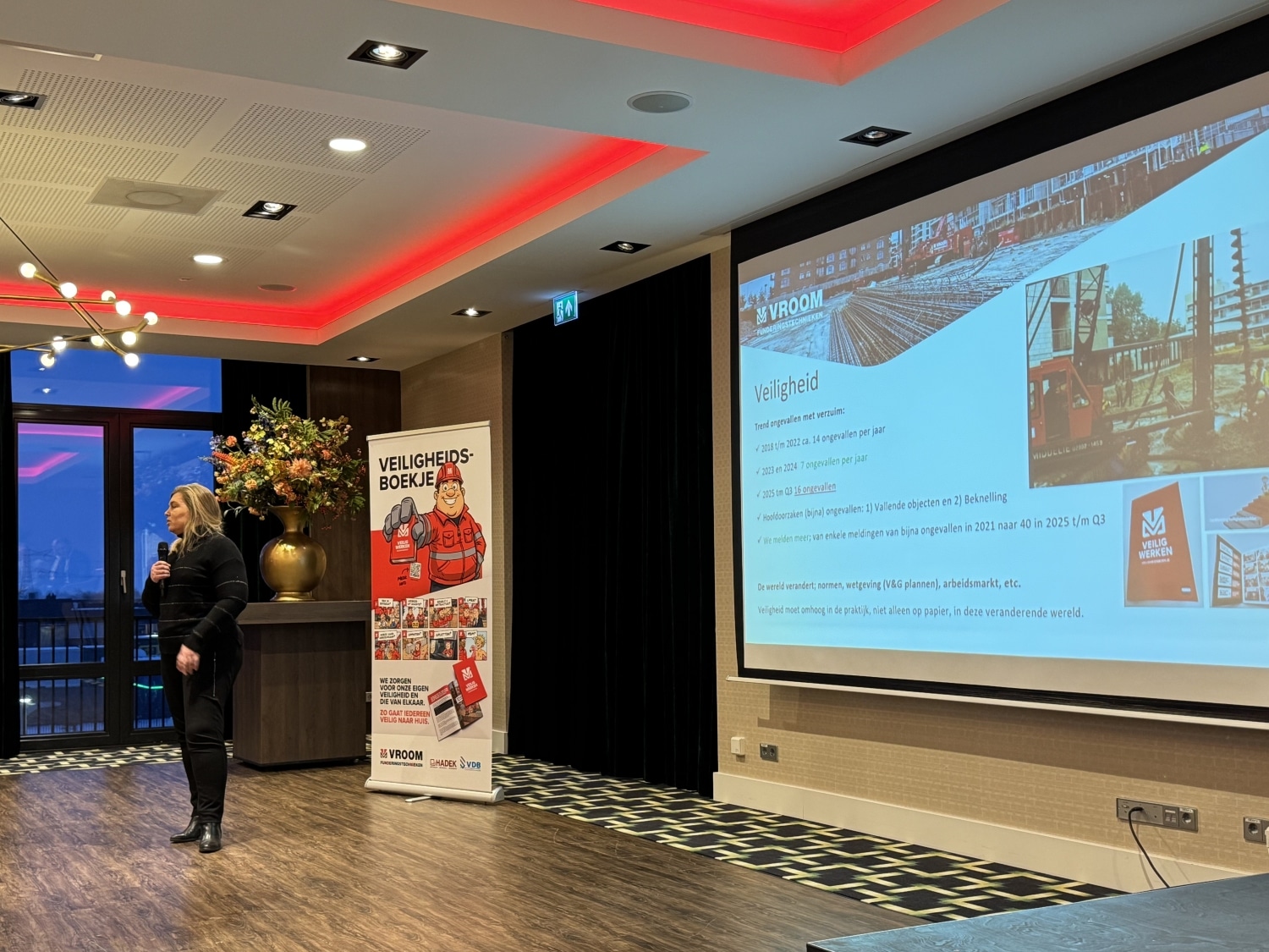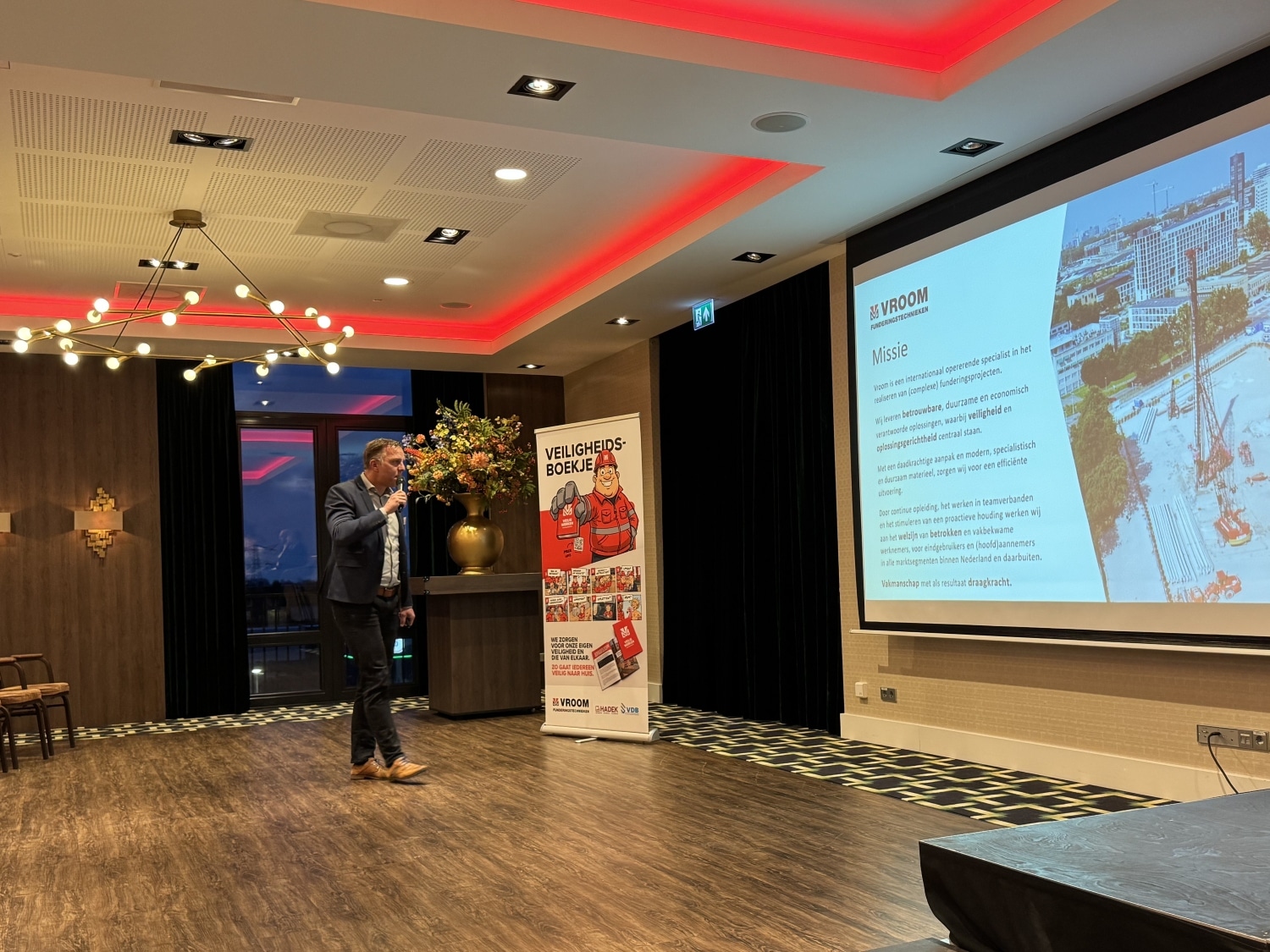 Op maandag 5 januari waren alle ruim 200 medewerkers van Vroom, Beton- en Vlechtbedrijf Hadek en VDB Funderingstechnieken aanwezig voor de eerste Scholingsdag, die werd gehouden bij Hotel Van der Valk in Oostzaan.