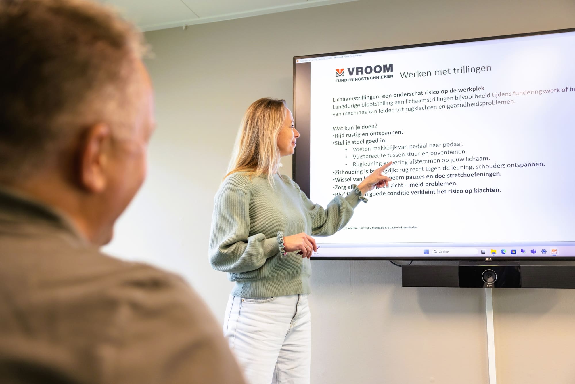 Duurzame inzetbaarheid is bij Vroom geen modewoord, maar een manier van denken, volgens Ariëlle. ‘We kijken naar iedereen: van de nieuwe instromer tot de medewerker die bijna met pensioen gaat. Het werk in de funderingsbranche is fysiek zwaar, dus we willen dat mensen hun werk vol kunnen houden én er plezier in blijven houden.’ Jerry vult aan: ‘Het begint al bij het sollicitatiegesprek. Ik vertel eerlijk dat dit een pittig beroep is, met buiten werken in alle weersomstandigheden en veel beweging en tilwerkzaamheden. We zoeken mensen die dat snappen en gemotiveerd zijn om hun schouders eronder te zetten.’