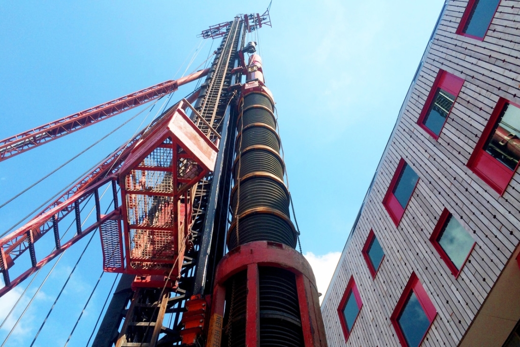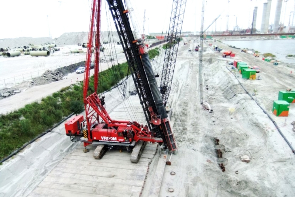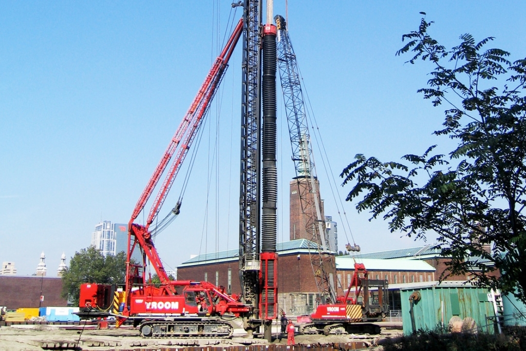 De balg wordt als een harmonica uitgetrokken en opgevouwen, waardoor het deel van de casing dat boven de grond uitsteekt afgeschermd blijft.