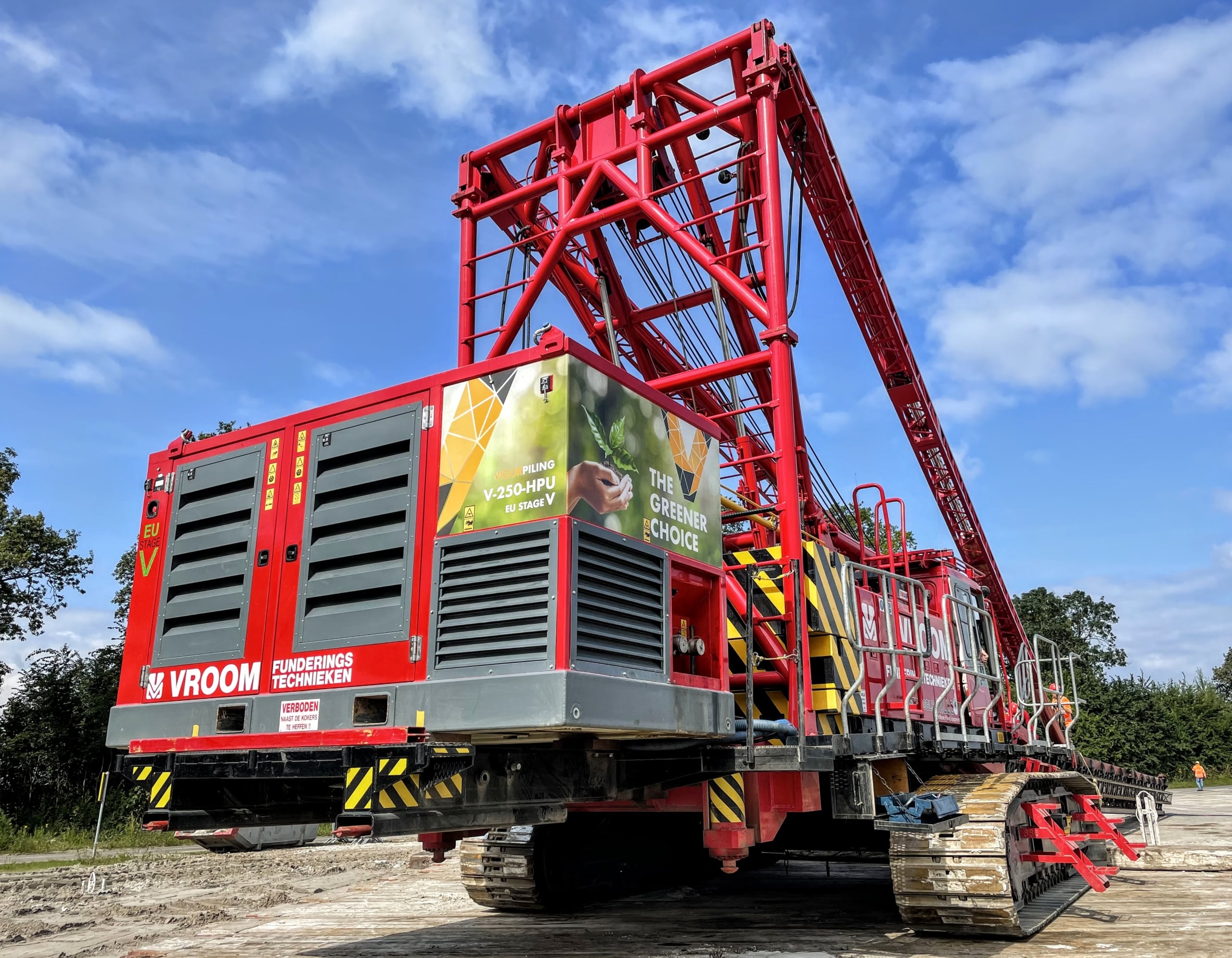 We streven naar de meest technische, duurzame en economische oplossingen. Ook het onderhoud van het materieel valt hieronder. De laatste jaren is er fors geïnvesteerd in het machinepark. Deze machines staan bekend als zeer degelijk en hebben een lange levensduur. De Hitachi CX1100GLS stond op de planning om te laten hermotoriseren naar Stage V. Toen bleek dat deze funderingsmachine ook een grote reparatie nodig had, was de keuze voor een revisie snel gemaakt. De revisie was een omvangrijk project waarbij Vroom koos om dit bij Van den Heuvel in Werkendam uit te laten voeren. In totaal duurde de revisie ruim een jaar, waarbij de gehele machine uit elkaar werd gehaald en elk onderdeel gecontroleerd, beoordeeld en waar nodig vervangen. Een revisie is zeer duurzaam, aangezien de machine wordt hergebruikt en nog jaren probleemloos ingezet kan worden. De machine is na de revisie uitgerust met de nieuwste technologie en voldoet ook aan de laatste (emissie)eisen.