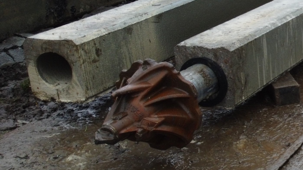 - Bij het schroeven van de voorgespannen holle prefab paal (HPS®) wordt een groutmengsel onder de verloren schroefpunt geïnjecteerd.