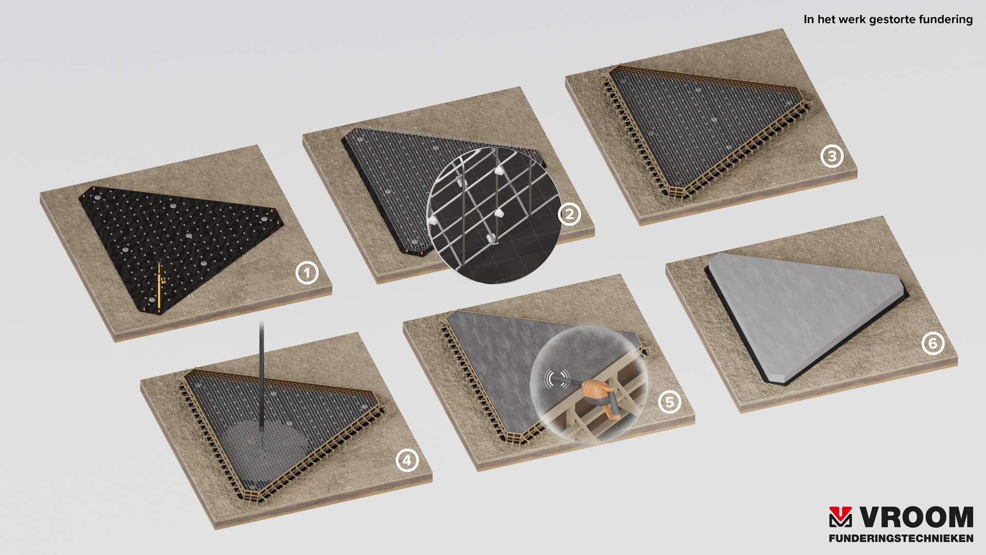 - Bekisting verwijderen (indien tijdelijk), gereed voor verdere afbouw.