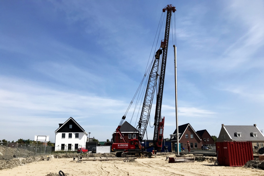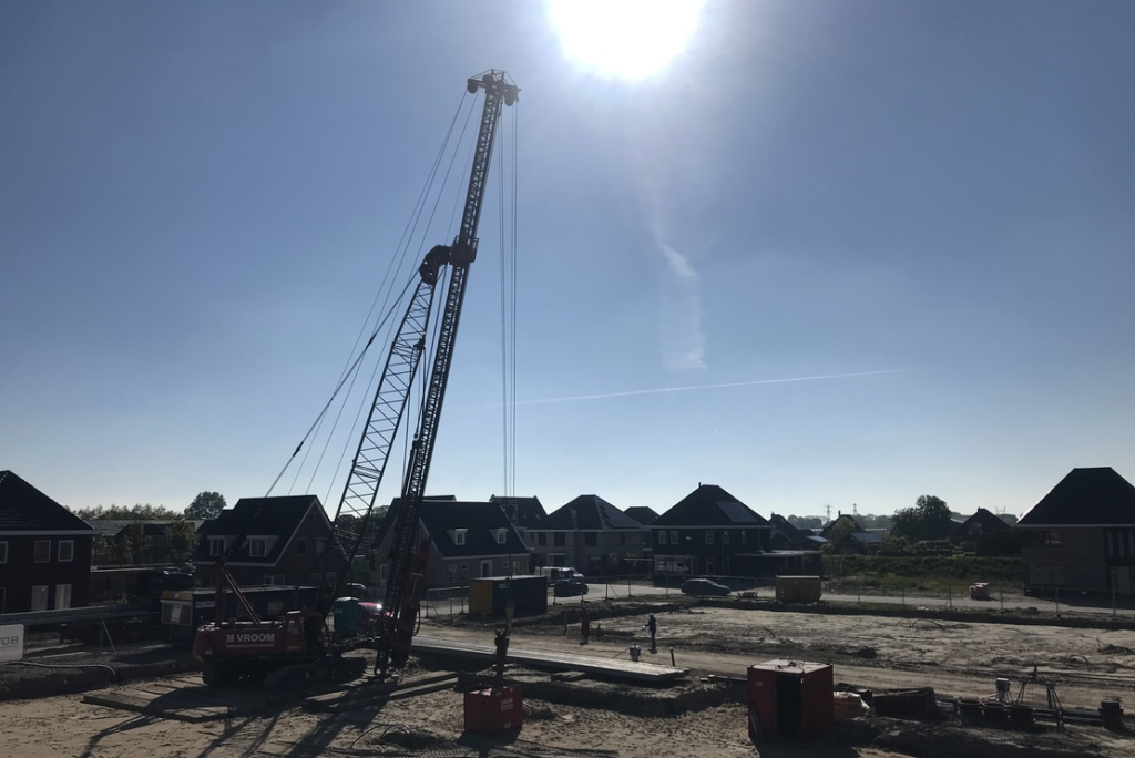 Binnen het Land van Luna fase 2 zullen door Belle Vue Wonen 12 levensloopbestendige woningen worden gerealiseerd. Wij heien hiervoor 160 prefab betonnen palen de grond in, die zorgen voor een solide fundering.
