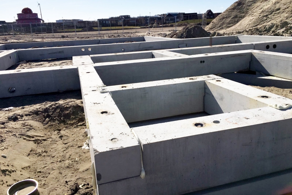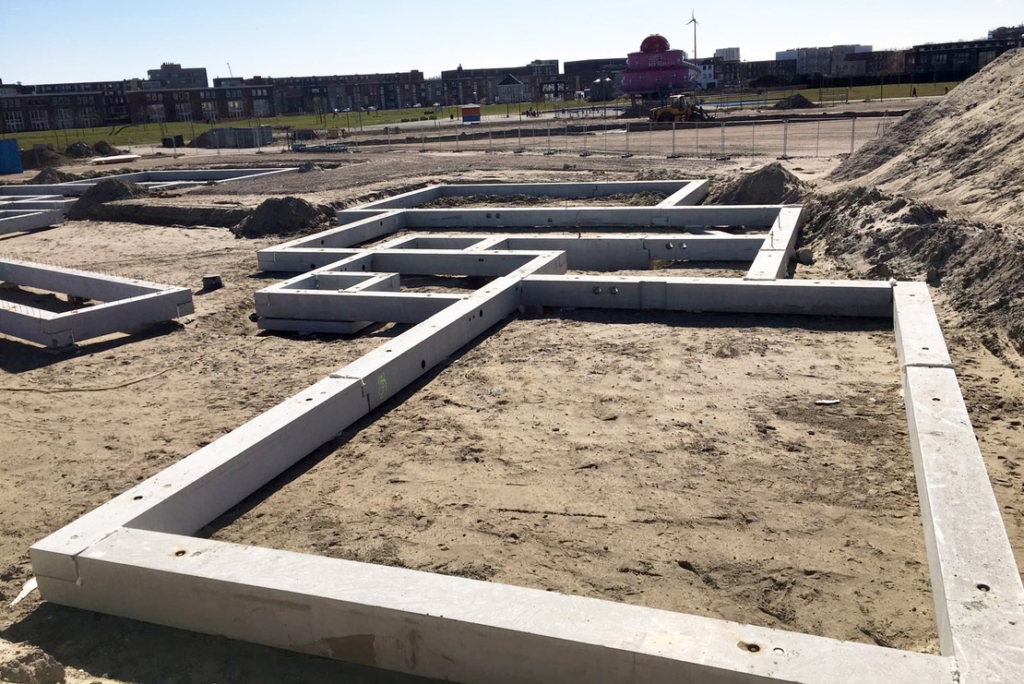 Vrijzicht 2 komt om de hoek van het Klokhuis-gebouw in Almere. Onder de gebouwen zijn vibropalen aangebracht van het type HBF. Hierop hebben wij een prefab fundering ontworpen, geleverd en gemonteerd. Deze manier van funderen zorgt voor een kortere bouwtijd en verhoging van de kwaliteit.