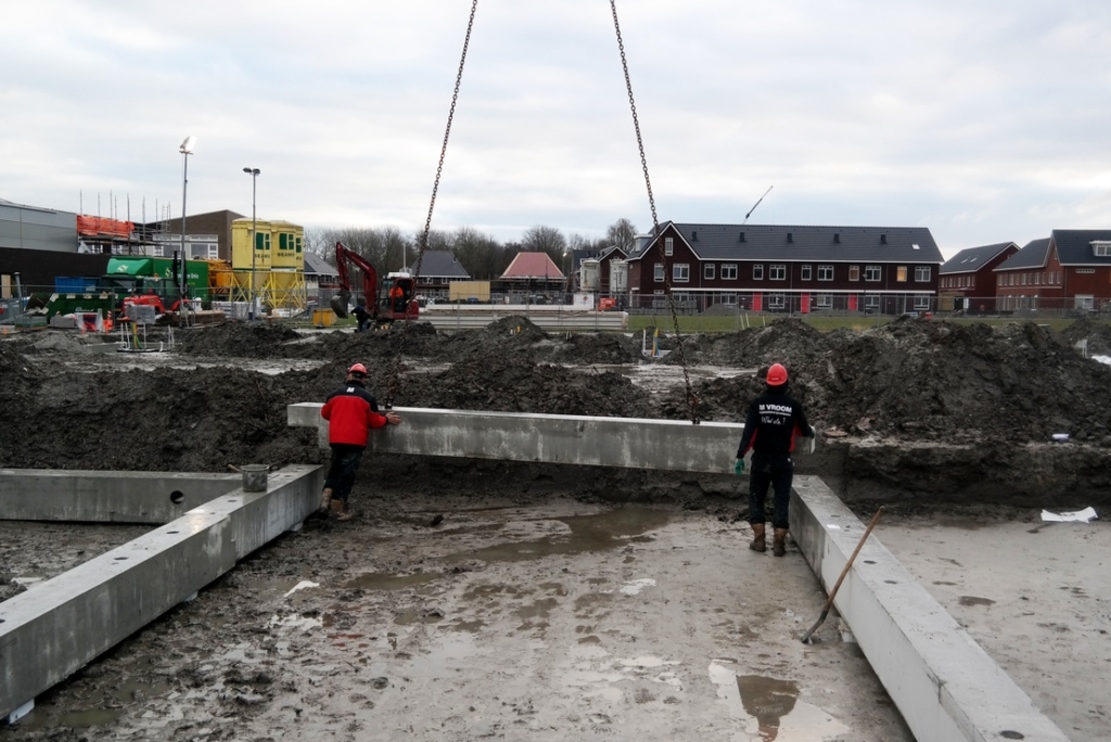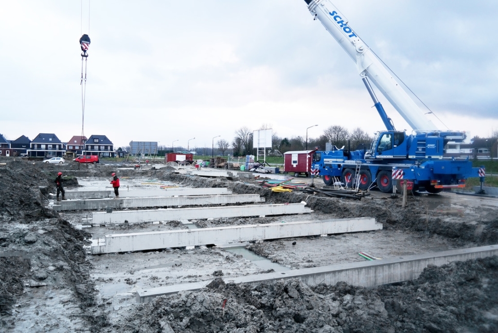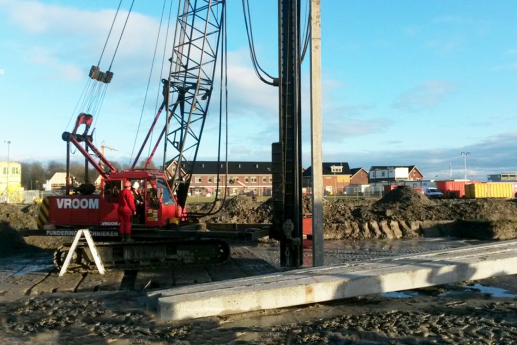 Aan de rand van Heerhugowaard hebben wij voor 35 woningen het totaalplaatje verzorgd: de complete funderingen, bestaande uit het heien van prefab palen en het leveren en aanbrengen van prefab funderingsbalken en bergingsvloeren.