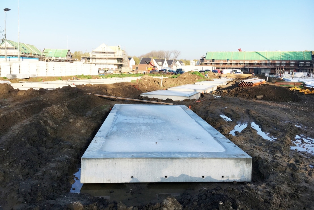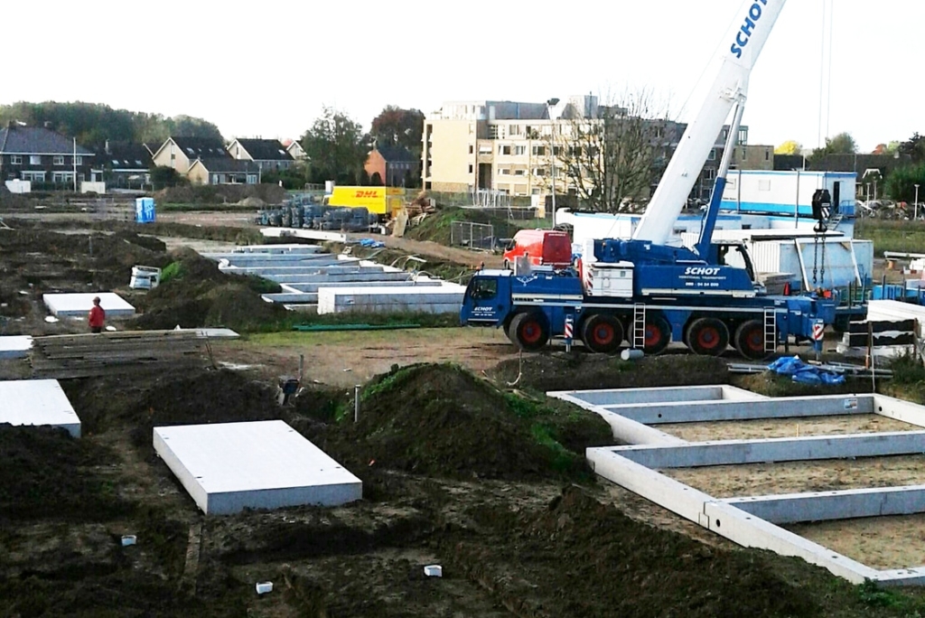 Een deel van de fundering is geïsoleerd uitgevoerd, omdat deze in de vloer is opgenomen. De isolatie wordt in de fabriek al aangebracht zodat de funderingsbalken compleet met isolatie eraan kunnen worden gemonteerd. Door het gebruik van prefab funderingsbalken kan er snel worden gebouwd. Per dag zijn gemiddeld 22 twee onder één kap woningen gemonteerd. De bergingsvloeren zijn in een aparte sessie gemonteerd.