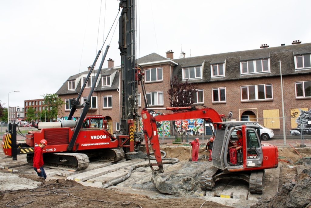 In opdracht van `Van Wijnen´ brengt Vroom 616 betonmortel schroefpalen aan voor de bouw van 93 woningen in de binnenstad van Den Haag. Door het toepassen van schroefpalen zijn er geen trillingen en daarmee geen overlast voor de buurt.