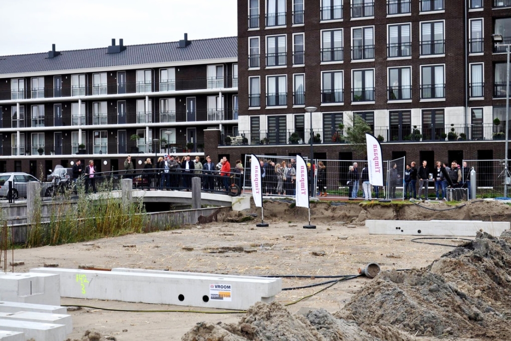 Na de officiële handeling werd er een bijeenkomst georganiseerd voor de toekomstige bewoners van de appartementen en de betrokken partijen van het project in de Crown Studio’s in Aalsmeer. Wethouder Tom Verlaan sprak de nieuwe bewoners toe: ”Ik ben verheugd dat nu gestart is met de bouw van het tweede appartementengebouw voor starters in dit project. In totaal worden er nu 31 appartementen gebouwd, waarvan er 29 aan Aalsmeerders, één aan een bewoner uit Uithoorn en één aan een bewoner uit Aalsmeerderbrug zijn verkocht. Ook is er 17 maal gebruik gemaakt van de starterslening die door de gemeente beschikbaar is gesteld. Hierdoor was het voor de starter op de woningmarkt aantrekkelijk om hier een woning te kopen en is de verkoop voorspoedig verlopen.”