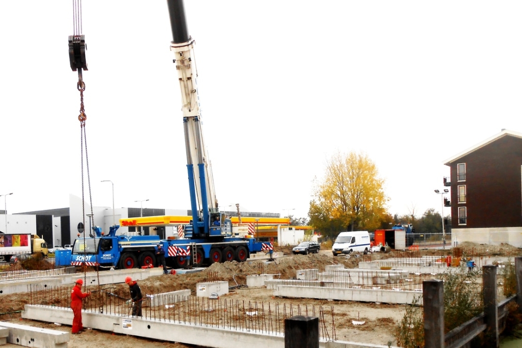De complete fundering wordt in één dag geplaatst. In de fundering zijn voorzieningen opgenomen die de vervolgwerkzaamheden ook snelheid bieden. Zo zijn er in de fundering doorvoeren opgenomen. Dit zijn sparingen waar de loodgieter zijn leidingwerk door gaat aanbrengen. In de prefab funderingsbalken zijn aan de bovenzijde ook stekken ingestort, waar de betonnen wanden aan worden vast gestort, zodat deze een geheel gaan vormen met de fundering,