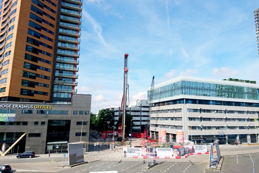 Aan de voet van de Erasmusbrug wordt gewerkt aan de Willemstoren, een charmante nieuwbouwontwikkeling van 40 meter hoog die plaats biedt aan 76 appartementen. Voor de fundering zijn 143 zware categorie VGS palen met groutinjectie aangebracht.