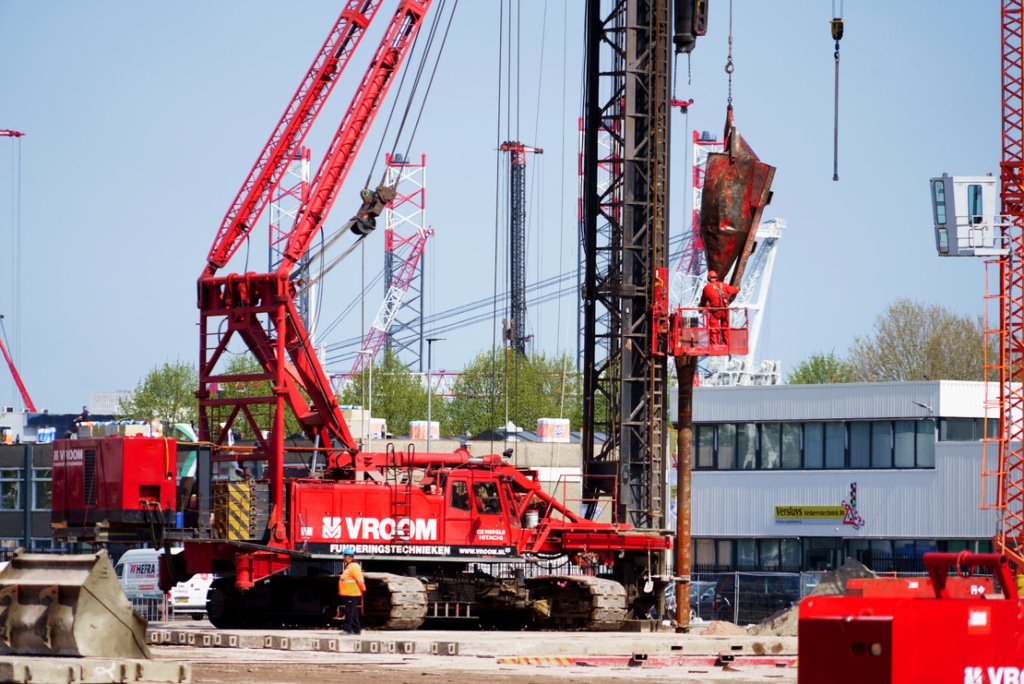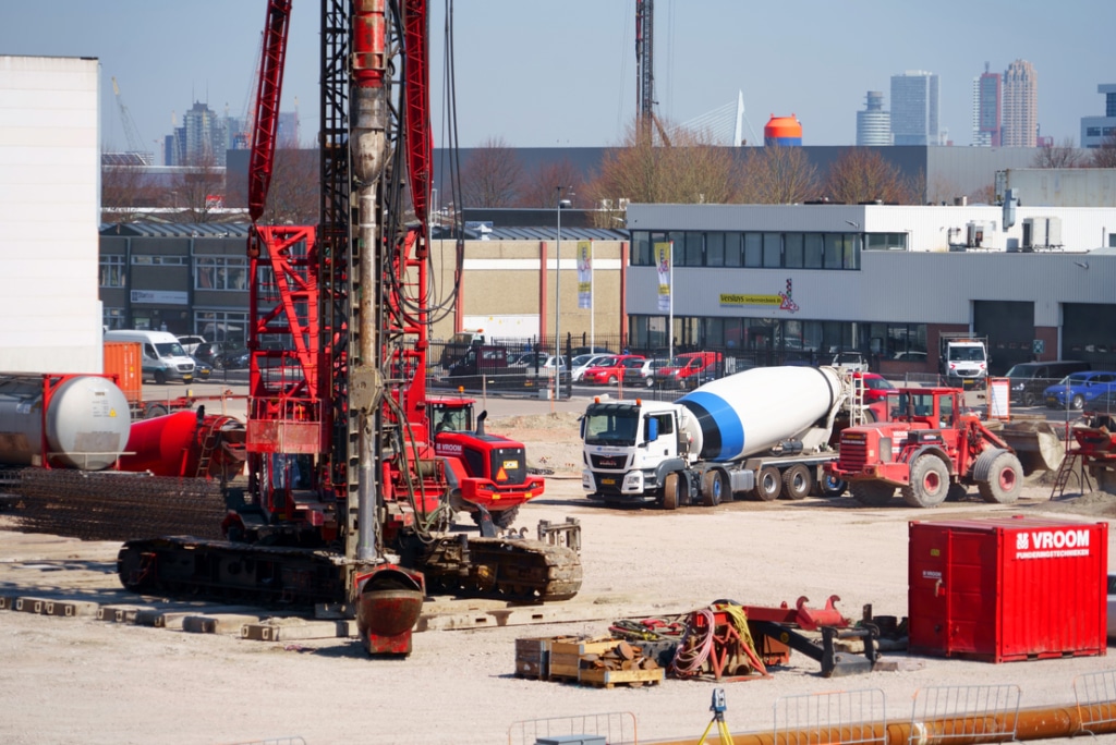 In de Rotterdamse haven werken wij aan een distributiecentrum bestaande uit 9.350 m2 bedrijfsruimte, 1.230 m2 mezzanine en 720 m2 kantoorruimte. Voor het gehele pand zijn al huurders aangehaakt, hierdoor moet de uitvoering met volle kracht plaatsvinden. Met 6 machines heien en schroeven we ruim 4.000 palen de grond in.