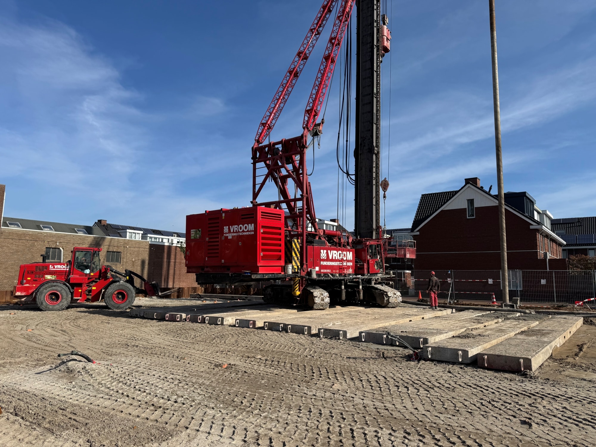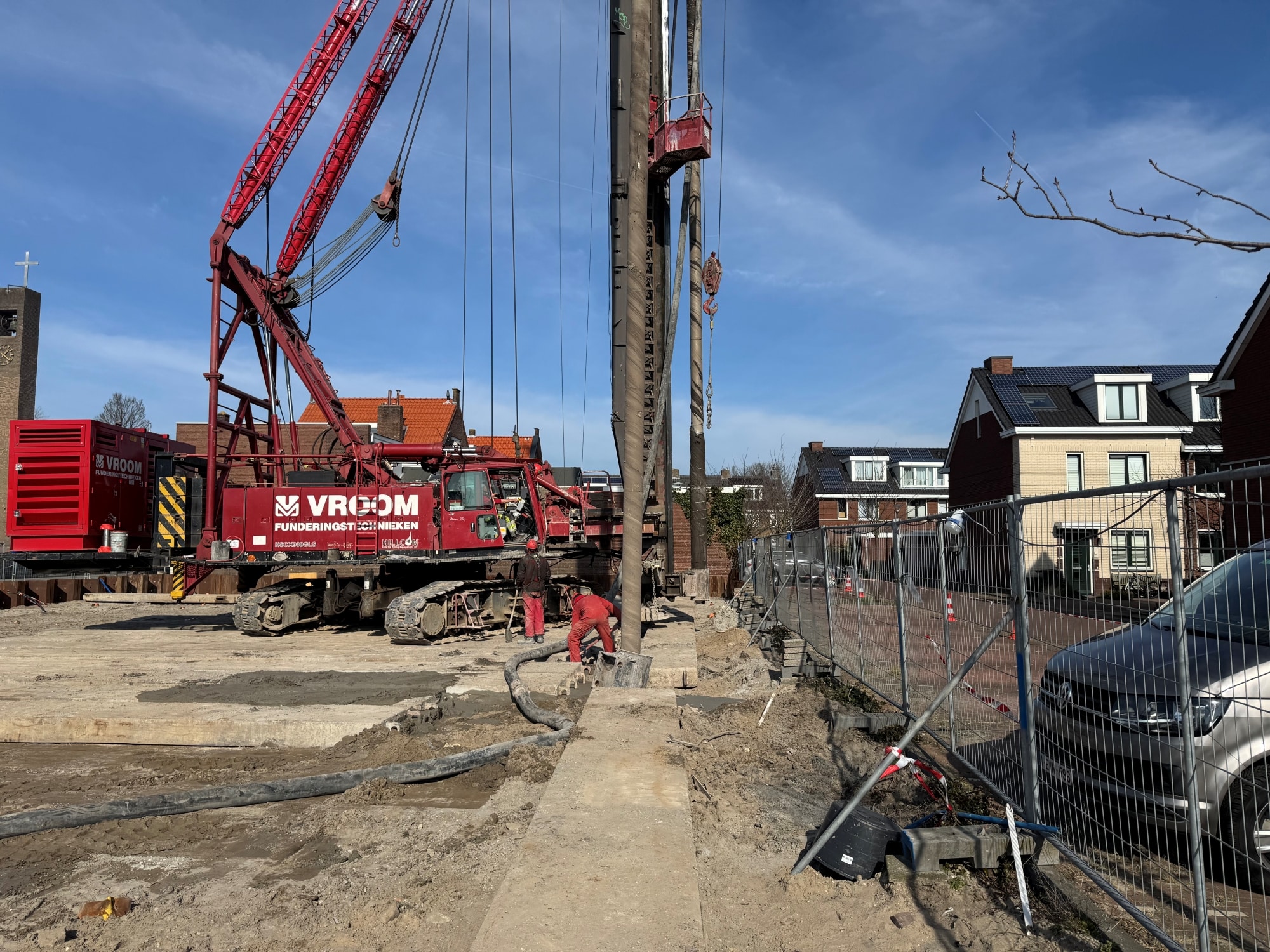 Voor de fundering van dit project is gekozen voor het trillingsvrije en grondverdringende DPA schroefpaalsysteem. Dit systeem minimaliseert de hoeveelheid vrijgekomen grond, voorkomt geluidsoverlast en is uitermate geschikt voor stedelijke bouwlocaties. De paallengte wordt aangepast aan de lokale grondgesteldheid en kan zowel trek- als drukkrachten opnemen. Daarnaast is de wapening over de volledige lengte mogelijk, wat zorgt voor extra stabiliteit. Dankzij deze eigenschappen biedt het DPA systeem een duurzaam en efficiënt alternatief voor traditionele funderingsmethoden, met minimale verstoring van de omgeving en een schone bouwput.
