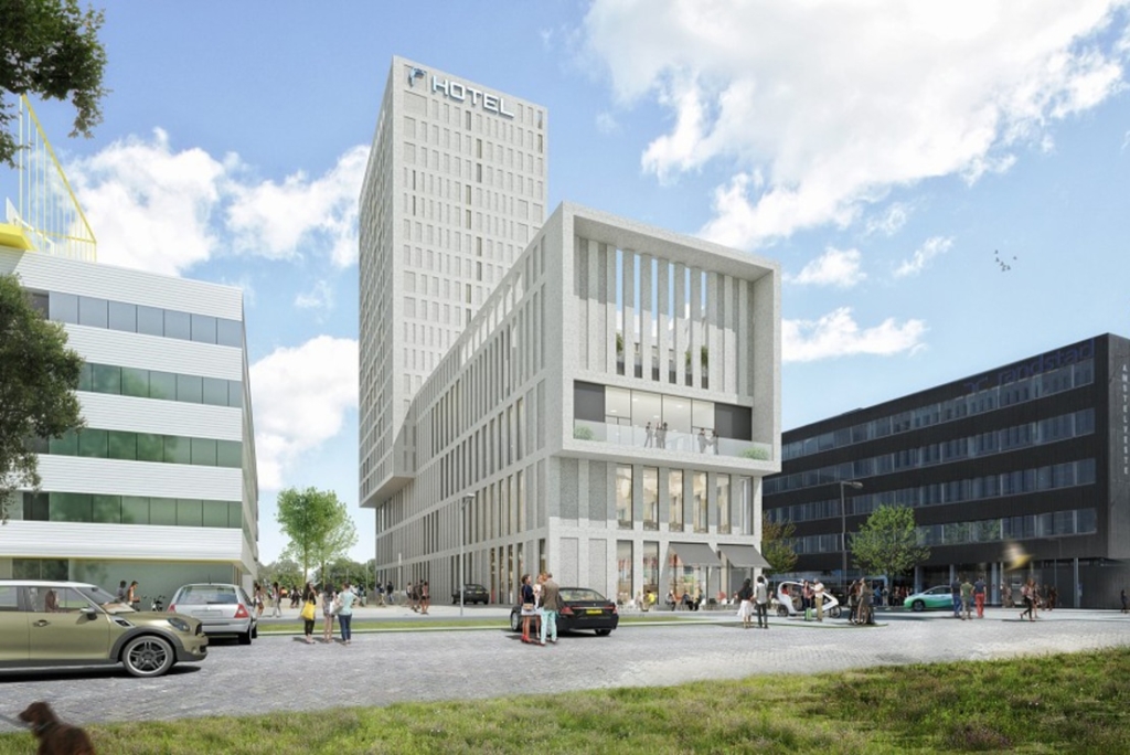 Het hotel komt langs de snelweg A2 en is verder bereikbaar via een nabijgelegen metrostation en een eigen aanlegsteiger in de Duivendrechtsevaart. Op de derde verdieping komt een bar met wellness- en fitnessvoorzieningen plus een zwembad. Ook begint hier het deel met de hotelkamers, die tot aan de bovenste laag van de hoogbouw doorloopt.