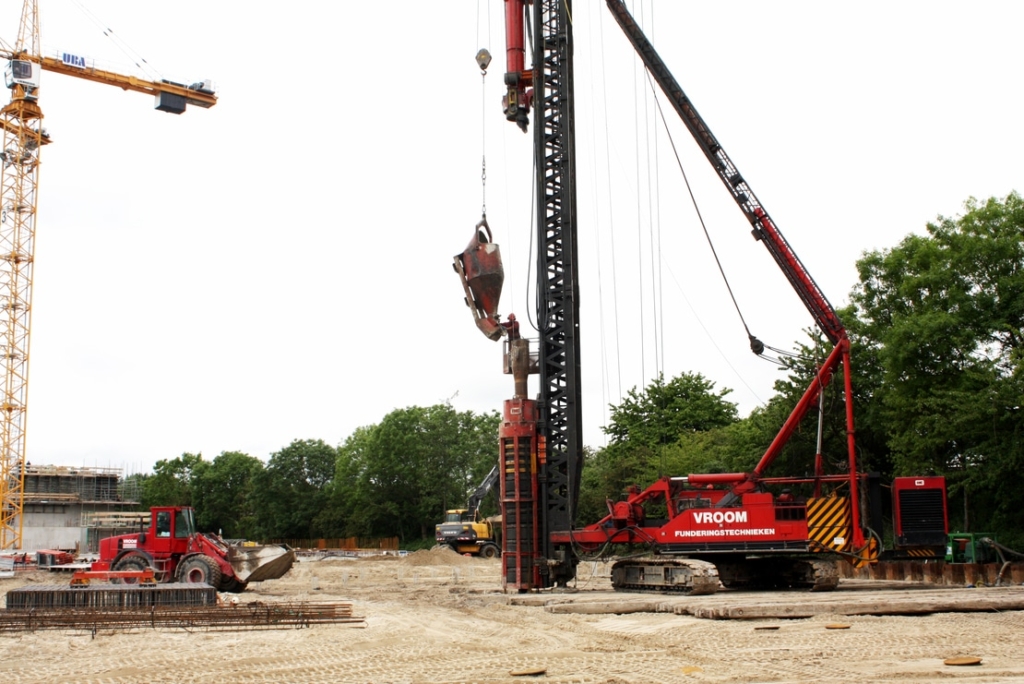 Plan Holland Park krijgt vorm. Na het funderen van blok 1 en 2 brengt Vroom nu de palen aan voor blok 3. Dit blok is eveneens gefundeerd op grondverdringende vibropalen. De palen hebben een lengte tot 20 meter en een diameter van 406 mm.