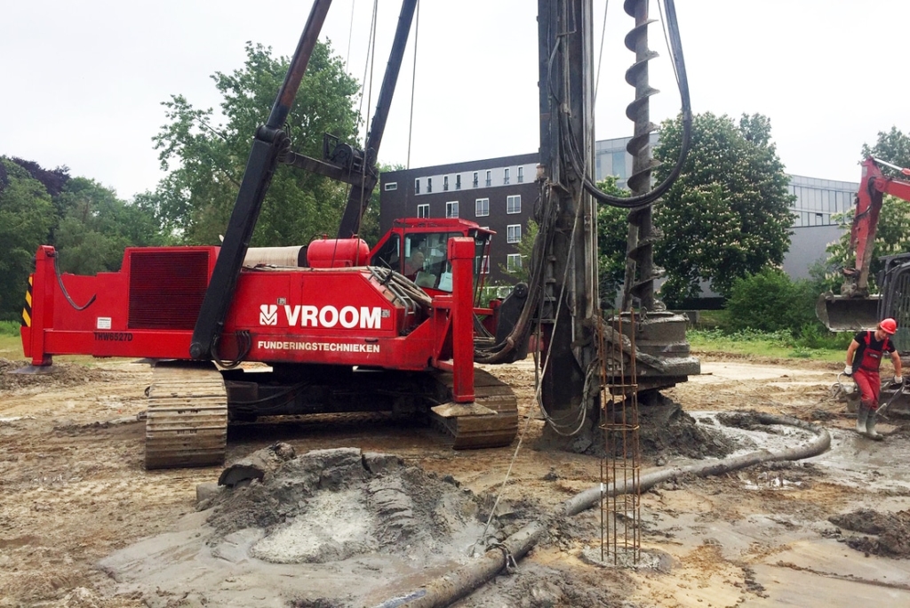 In Gelderland is het maken van betonmortelschroefpalen zeker geen uitzondering. Het systeem is trillingsvrij en voor de Gelderse grond een uitermate geschikt systeem. Na het vervaardigen harden de palen vijf dagen uit. Op dat moment komt de beton op een sterkte dat de palen worden doorgemeten; een controlemiddel op discontinuïteiten. Als dit achter de rug is en alle palen in orde zijn, gaat de verdere bouw starten.