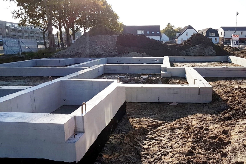 De wijk Mercuriushof in Assen bestaat uit verschillende woningtypes: gezinswoningen aan het hof, bijzondere stadsvilla’s aan de kade en verschillende appartementen. Vroom legt de basis door het aanbrengen van betonmortelschroefpalen, prefab funderingsbalken en liftputten.