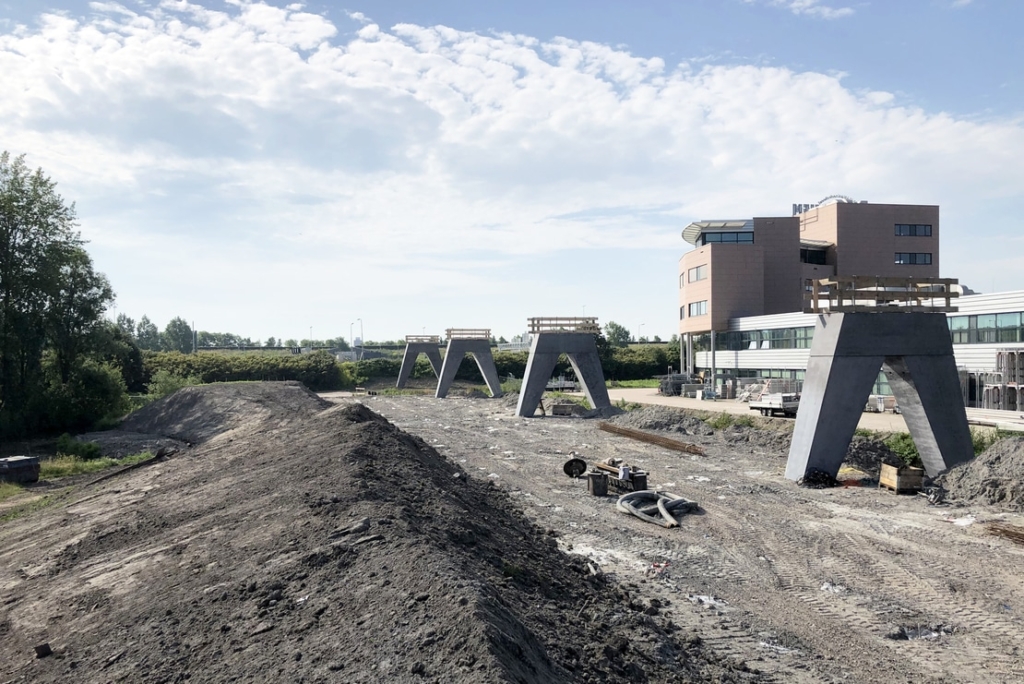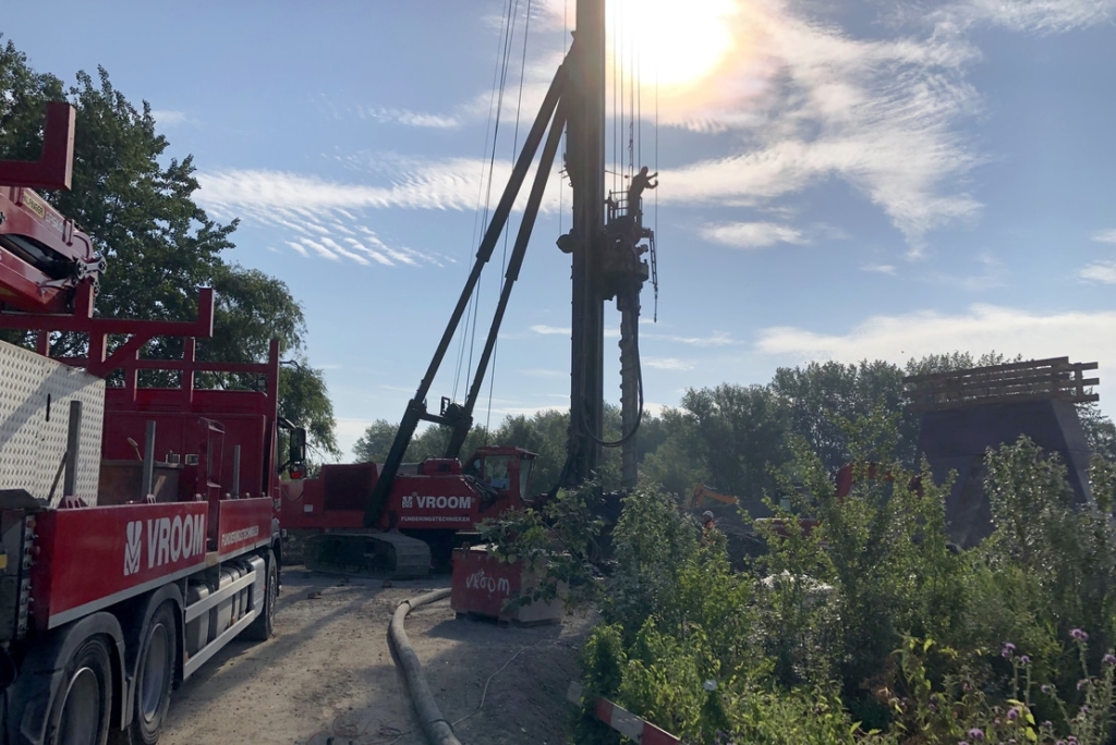 In Den Haag verrijst een prachtig trekfietsviaduct nabij de A4. Het viaduct bestaat uit twee brugdelen die beiden een lengte hebben van ongeveer 80 meter. Deze worden in twee delen van 40 meter aangevoerd en gemonteerd op tijdelijke steunpunten. Vervolgens kunnen de brugdelen constructief worden verbonden. Om deze constructie te dragen, hebben we ruim 330 stuks buisschroefpalen de grond in geboord!