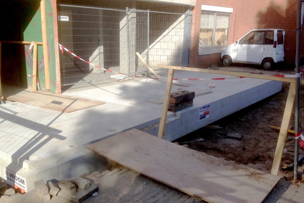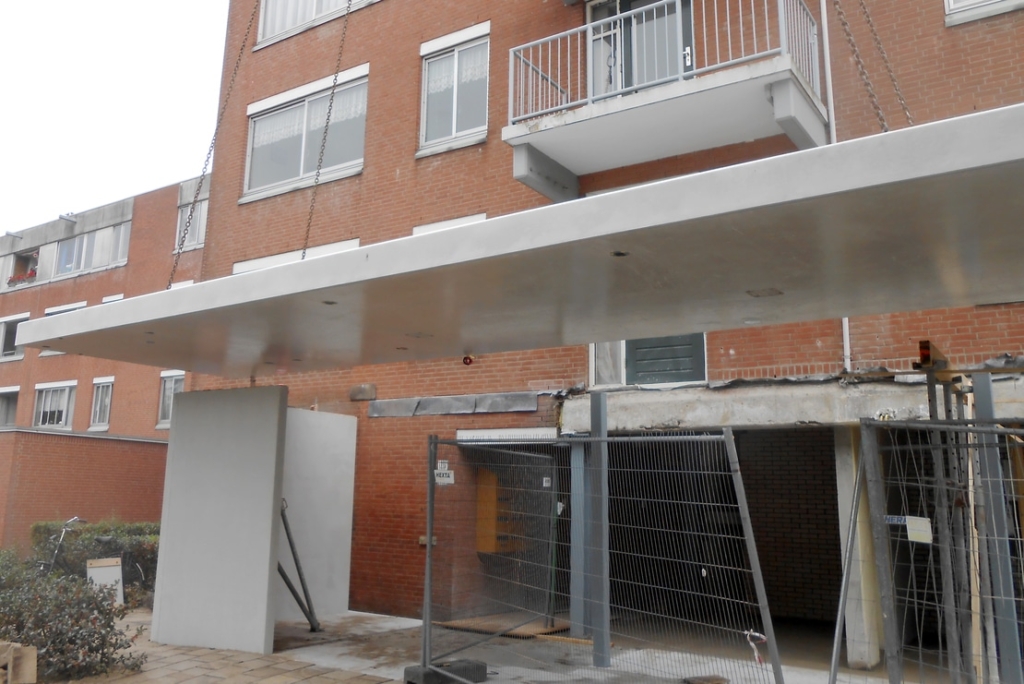 De vloeren onder de nieuwe aanbouwen (portieken) aan de buitenzijde zijn geprefabriceerd. De vloeren worden in de fabriek onder constante omstandigheden geproduceerd en vervolgens naar de wijk getransporteerd. Hierdoor zijn de vloeren van hoge kwaliteit en maatvast. Alle nodige voorzieningen zijn in de prefab bergingsvloeren ingestort waarmee de wanden en kozijnen gemakkelijk en exact aan de vloeren worden bevestigd.