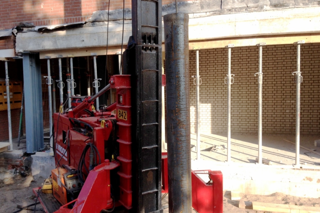 Zowel de prefab bergingsvloeren als de in het werk gestorte elementenvloeren zijn gefundeerd op palen. Vanwege de beperkte ruimte in de wijk alsmede het dicht heien bij de bestaande woningen is er gekozen voor trillingsarme segmentpalen. Deze palen worden gemaakt van korte segmenten stalen buizen welke ter plaatse op elkaar worden gelast en vervolgens de grond in worden geheid. De segmentpalen worden aangebracht met een kleine machine welke zo klein is dat deze zowel buiten als binnen de palen kan aanbrengen. In totaal zijn er 41 stuks stalen buispalen geheid met een lengte van maximaal 11 meter.