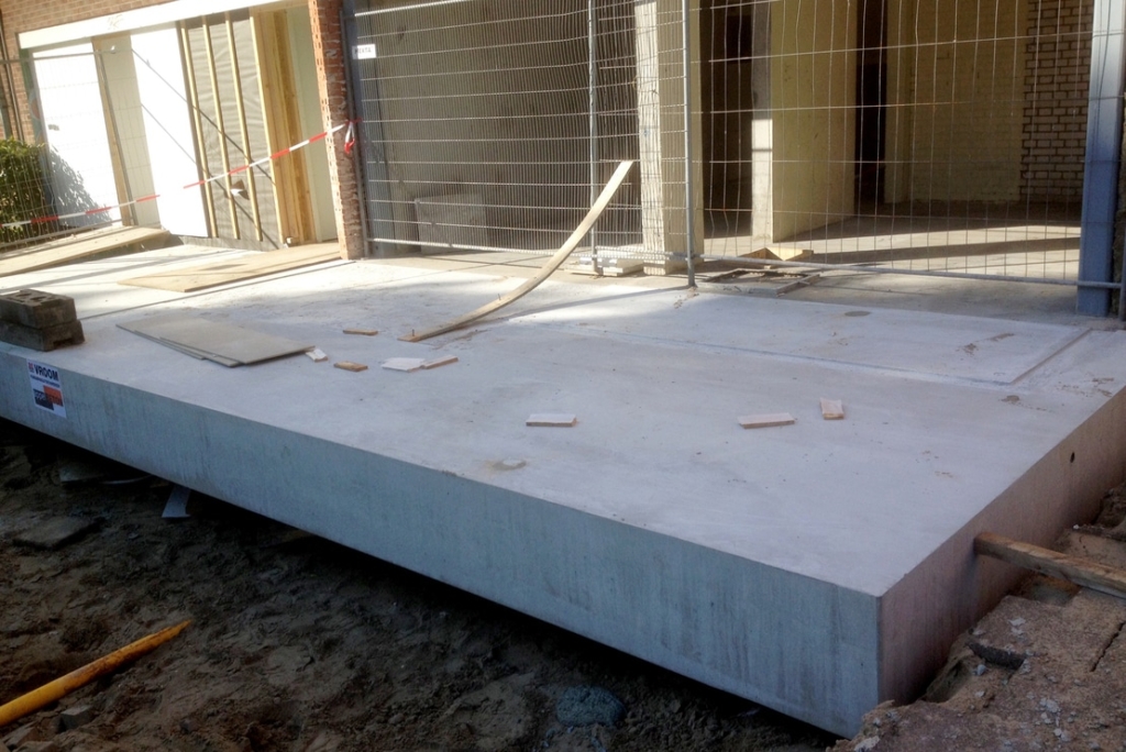 Deze fase is er zowel buiten als binnen de woningen gewerkt. De vloeren binnen de woningen (doorgangen) zijn uitgevoerd als geïsoleerde elementenvloeren. Deze vloeren worden een prefab elementen aangeleverd en op maat gemaakt. Daarna worden de elementen ter plaatse afgestort met beton.