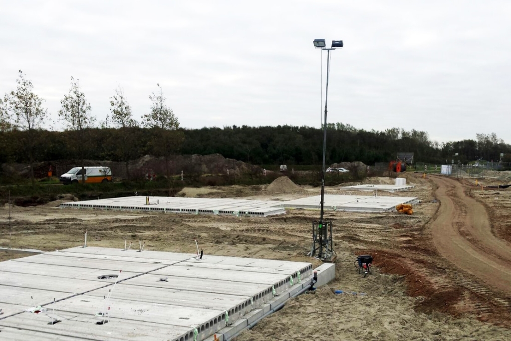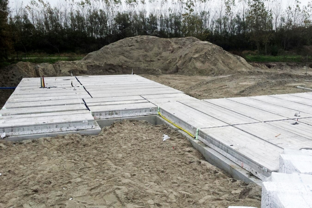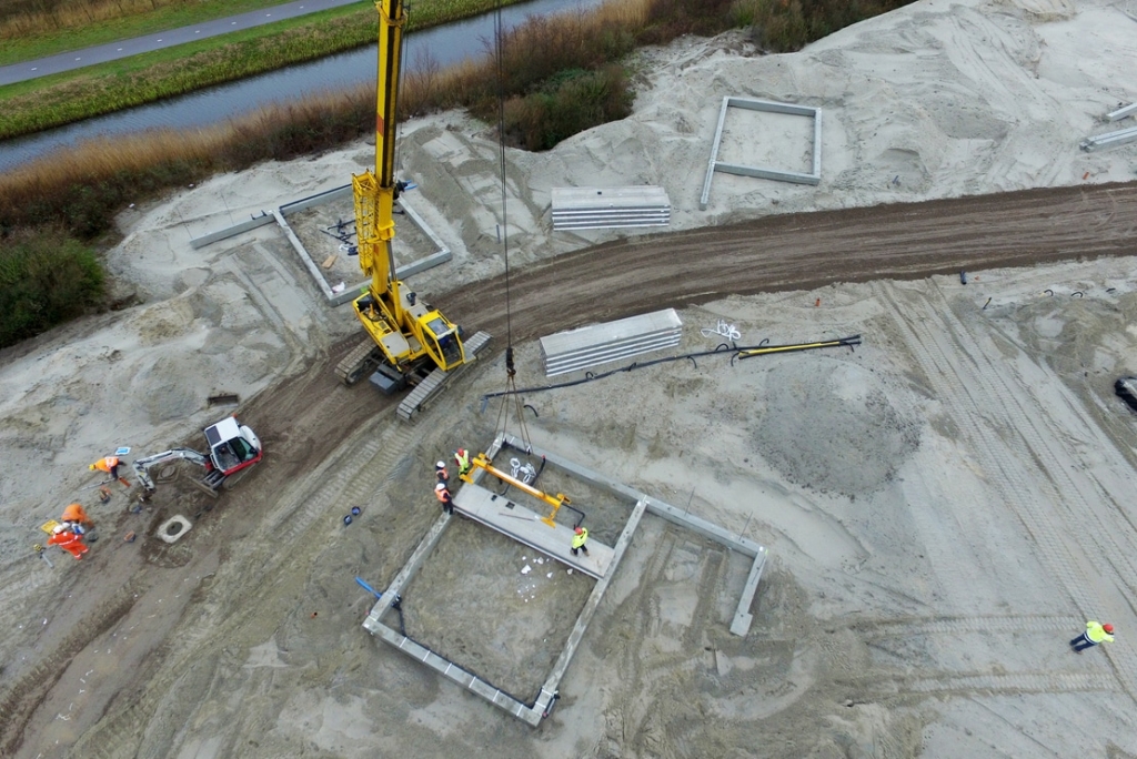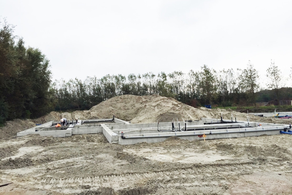 De funderingen van de woningen zijn uitgevoerd in prefab funderingsbalken. Naast de funderingsbalken voor de woningen zijn er ook balken voor de tuinmuren gemonteerd. De balken zijn voorzien van doorvoeren zodat de installaties onder de woningen aangesloten kunnen worden.