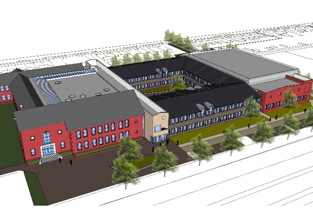 Het oorspronkelijke gebouw uit 1954 blijft behouden en wordt zo goed mogelijk in de oude staat teruggebracht. De bestaande patio wordt overkapt; hier zal de aula worden ingericht. De hal achter de hoofdentree vormt straks de verbinding tussen het bestaande gebouw en de nieuwbouw. In het twee bouwlagen tellende nieuwbouwdeel zal een nieuwe patio worden gerealiseerd waar leerlingen buiten kunnen pauzeren. Daarnaast zullen er vier nieuwe gymzalen worden gebouwd, met daaronder een fietsenstalling.