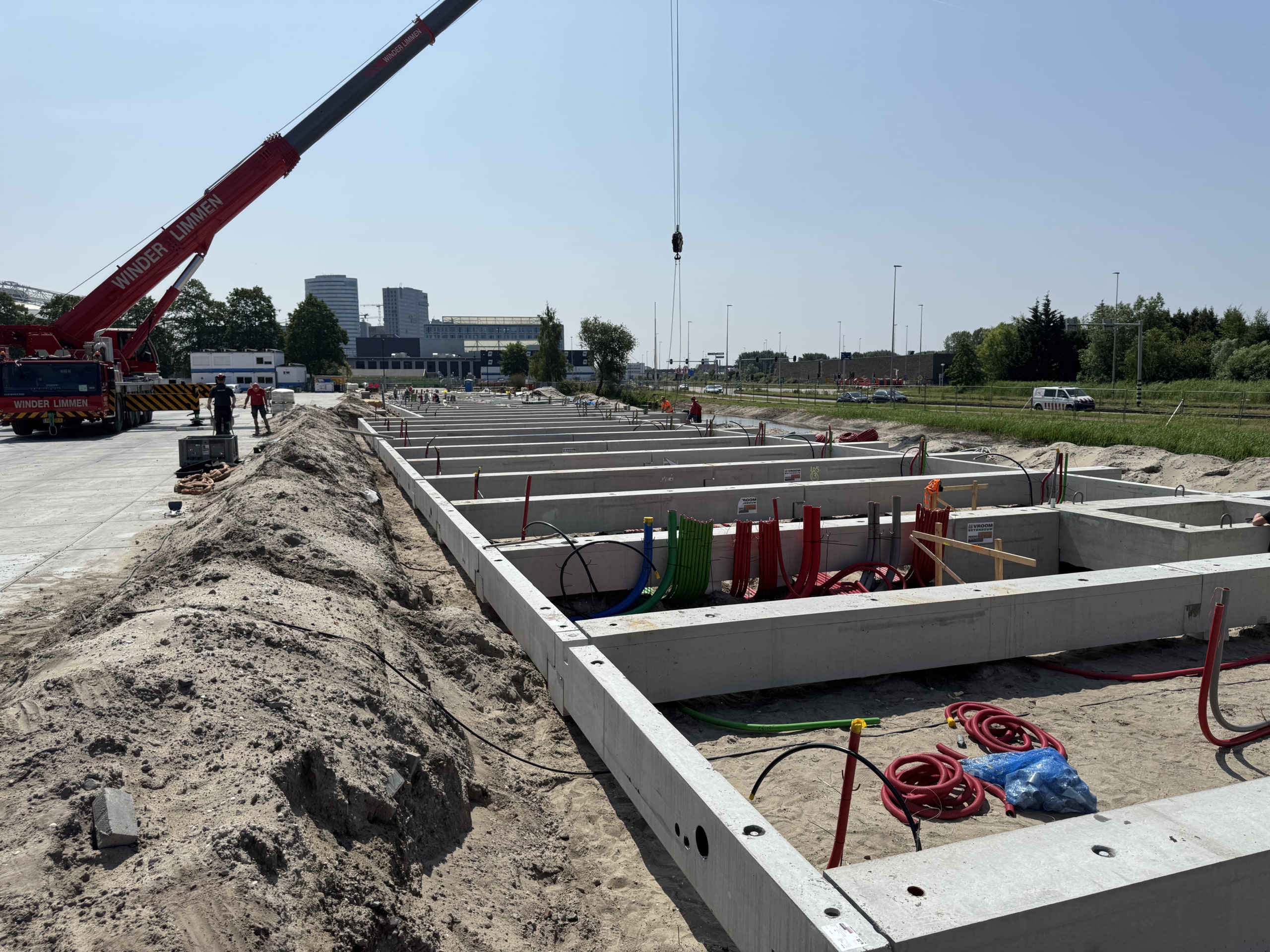 Voor dit project leveren en heien wij in meerdere fases prefab betonpalen. Daarnaast monteren we prefab funderingselementen. Deze elementen zorgen voor een efficiënter materiaalgebruik en dragen bij aan het verminderen van transportbewegingen, wat resulteert in een lagere CO₂-uitstoot.