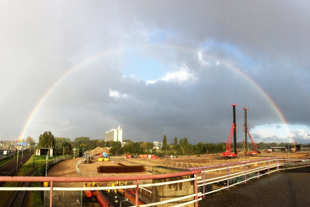 De twee grootste krachtpatsers van Vroom werken aan dit mooie project aan de A20. Ruim 1.000 vibropalen gaan daar de komende tijd de grond in en zullen de nieuwe werkplaats van de RET boven de grond houden.