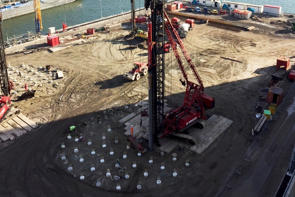 Het heiwerk bestaat voornamelijk uit vibropalen; 831 stuks met een totale lengte van ruim 27 kilometer worden de grond in gestampt. Het werk wordt uitgevoerd met 2 grote funderingsmachines, vanwege de grote diameter van 610 millimeter. Een klein gedeelte bestaat uit 20 stuks grondverdringende DPA-palen. Voor dit project worden ook 50 stuks holle casings in een diameter van 914 mm met een lengte van 16 meter verwerkt. De casings worden na het inheien leeg geboord waarna ze vol worden gestort met beton.