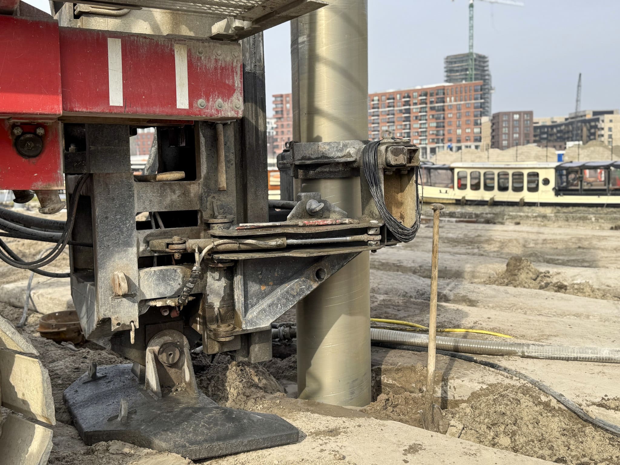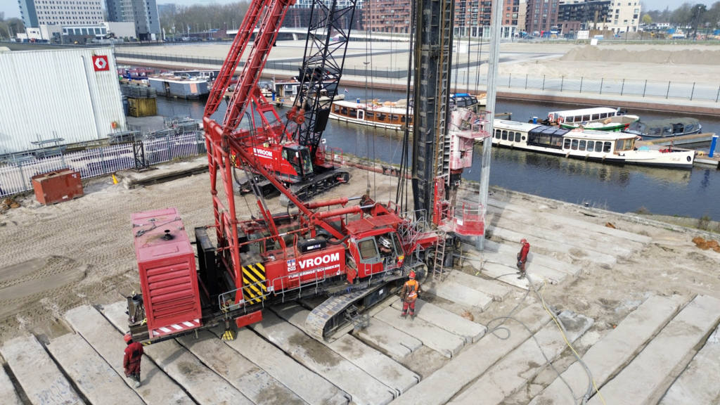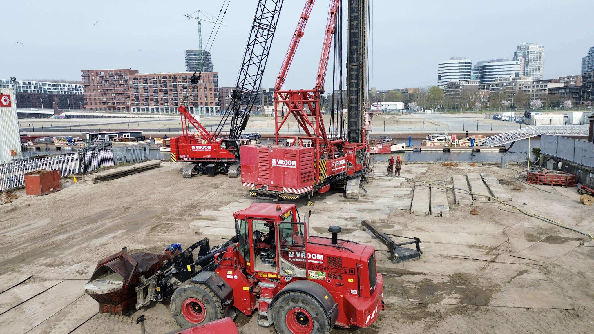 Op KBF Dock Amsterdam realiseren wij 321 HEK-combi-schroefpalen met groutinjectie. Dankzij strakke voorbereiding, slimme logistiek en nauwe samenwerking met onze partners leveren we een trillingsvrije, geluidsarme fundering voor dit ambitieuze gebied in transformatie.