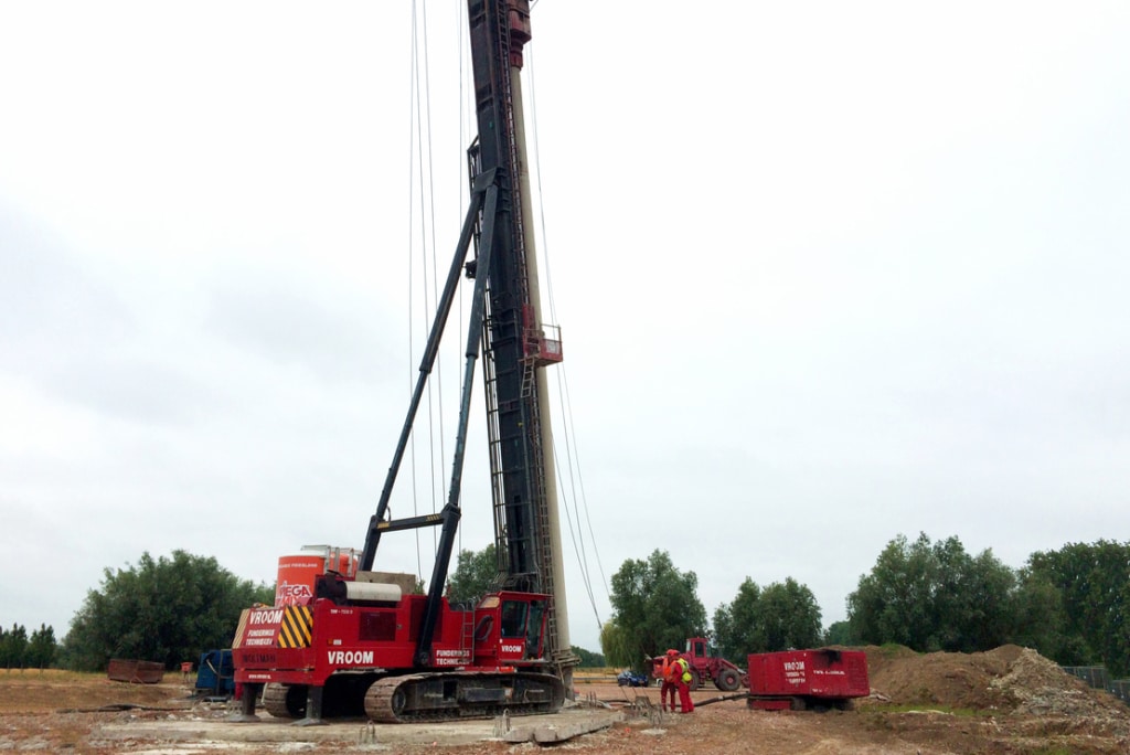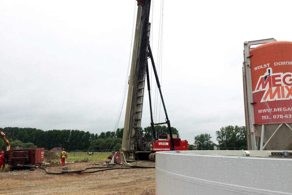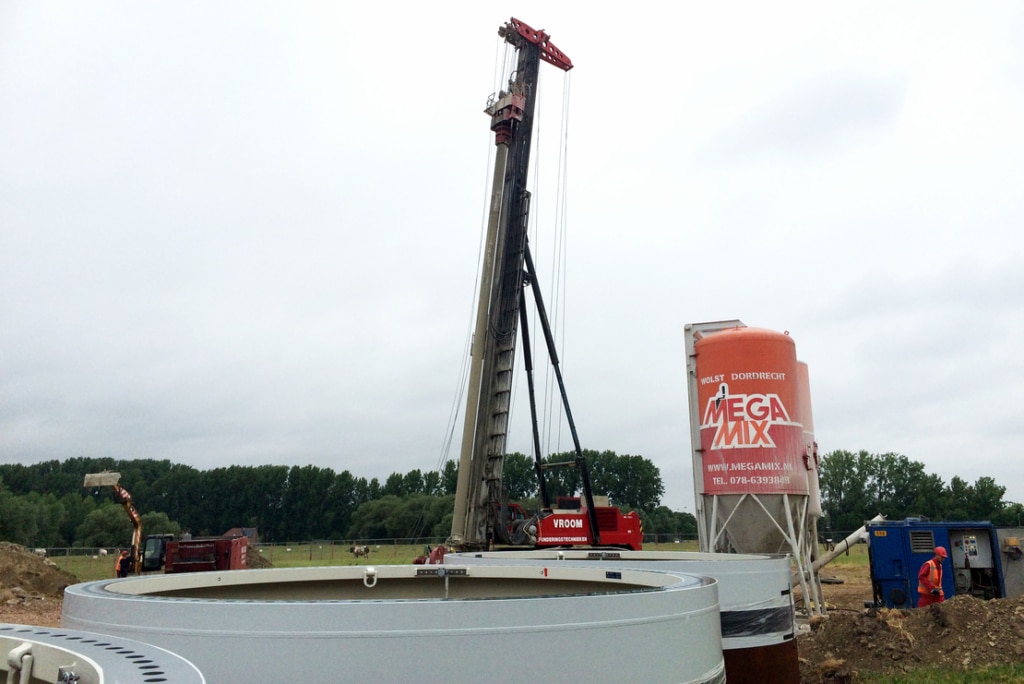 In de kanaalzone op de grens van Beersel en Sint-Pieters-Leeuw worden vijf windturbines geplaatst. Voor de fundering van de molens heeft Vroom International Piling de VGS-palen aangebracht. Het produceren van de palen is ter plaatse, geheel trillingsvrij en geluidsarm, met de toevoeging van grout in de grond uitgevoerd.