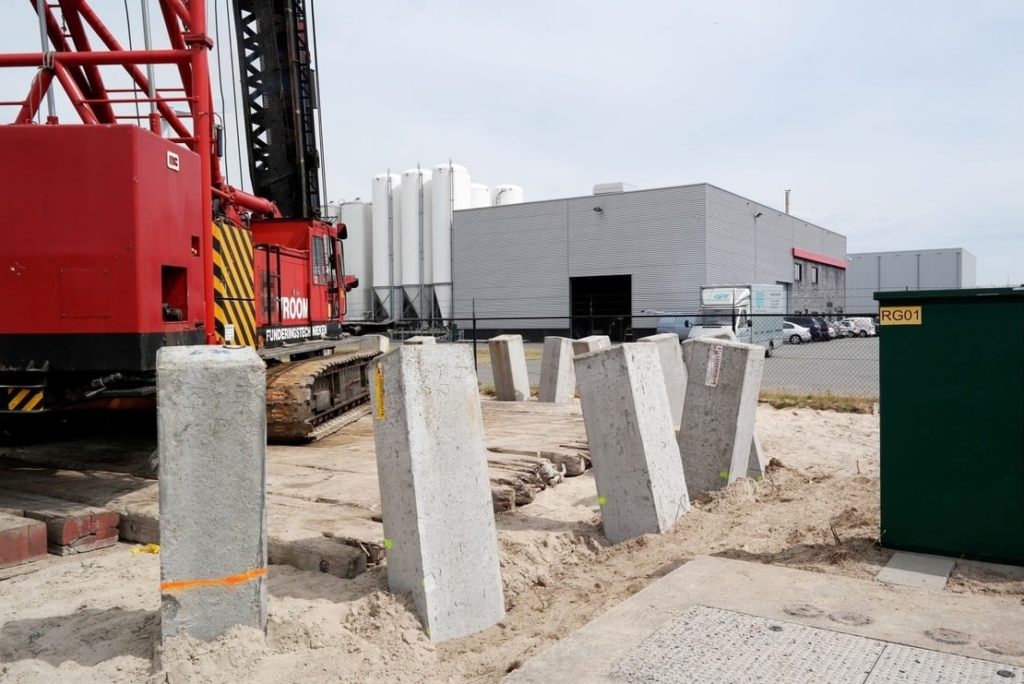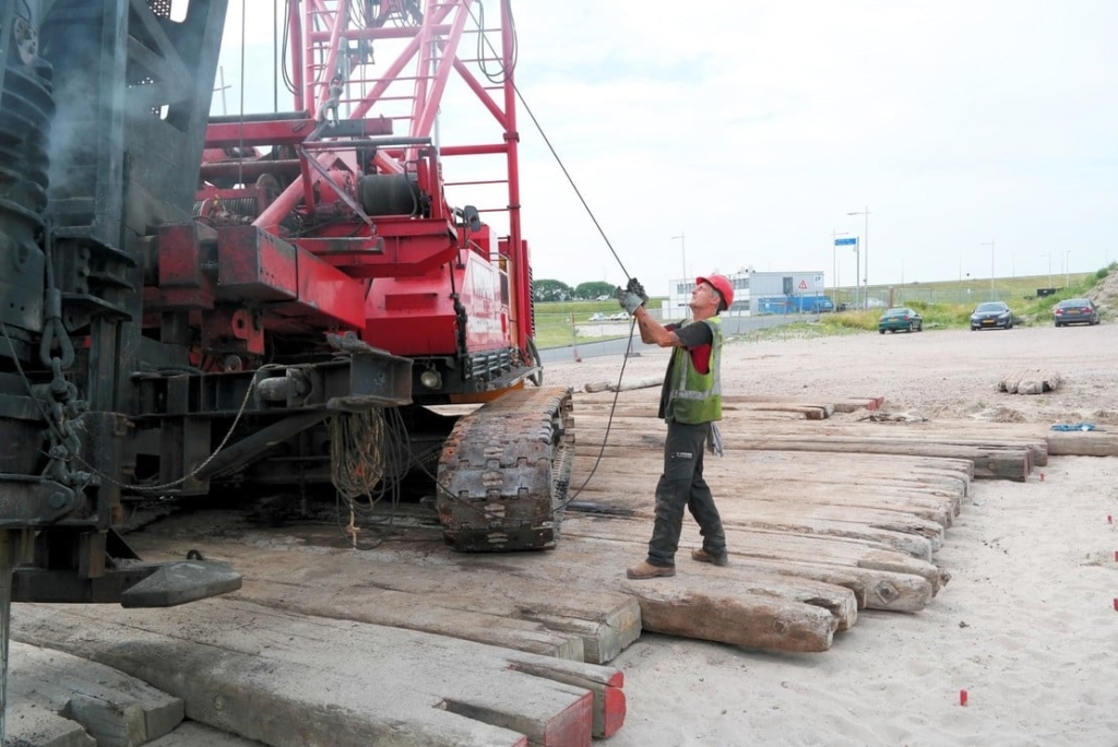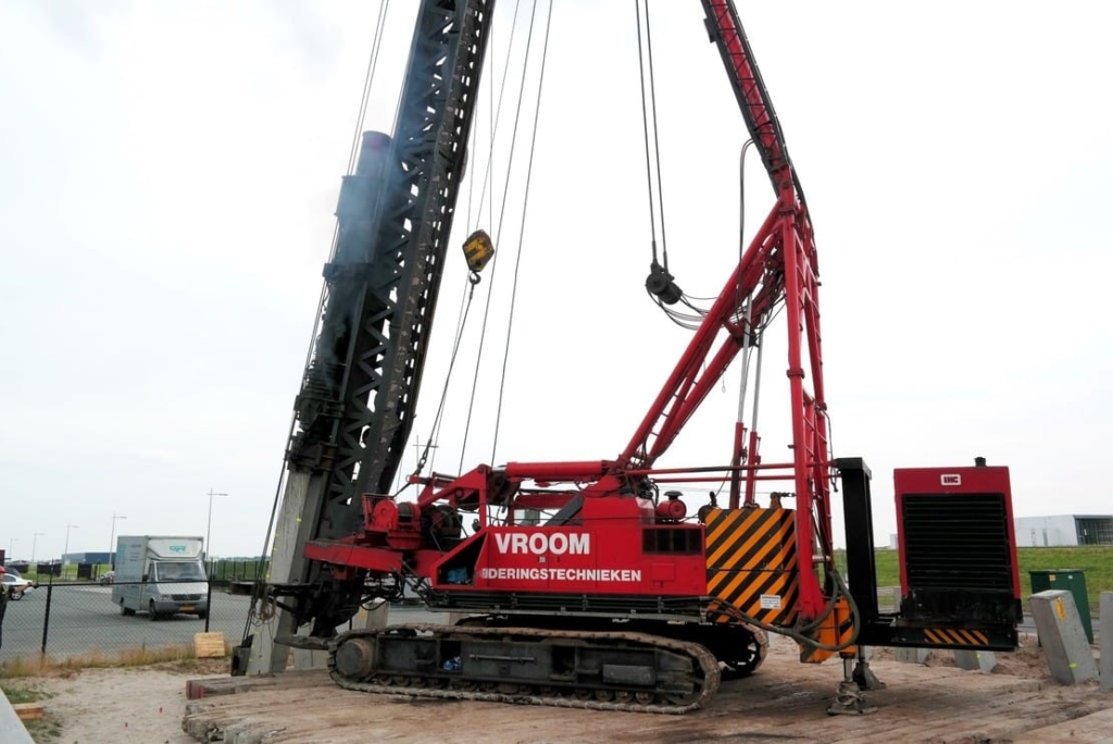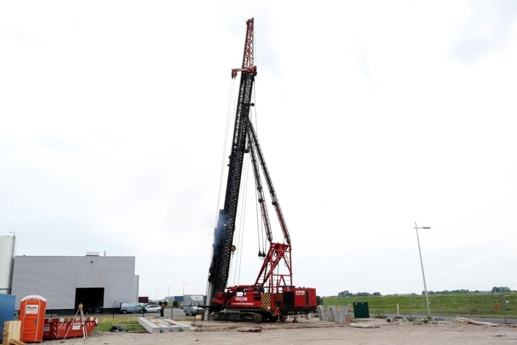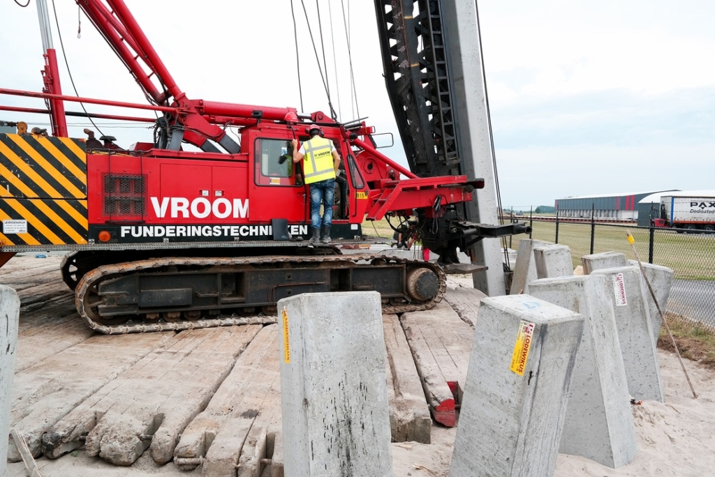 De turbines staan weliswaar niet ver van elkaar verwijderd, maar er zijn teveel obstakels om de funderingsmachine rijdend te verplaatsen van de ene naar de andere bouwplaats. Daarom is de machine één keer naar Kampen aangevoerd en daarna drie keer getransporteerd van de ene naar de andere molen.