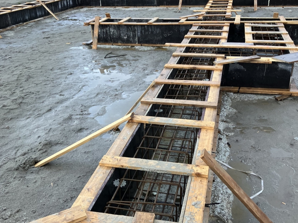 Rond de wapening komt een bekisting die rust op een ondersteuningsconstructie. Afhankelijk van het project gebruiken we een permanente isolerende EPS-bekisting of een tijdelijke houten of stalen bekisting. Tussen bekisting en wapening worden afstandhouders geplaatst zodat het staal goed wordt omhuld door beton en aantasting wordt voorkomen.